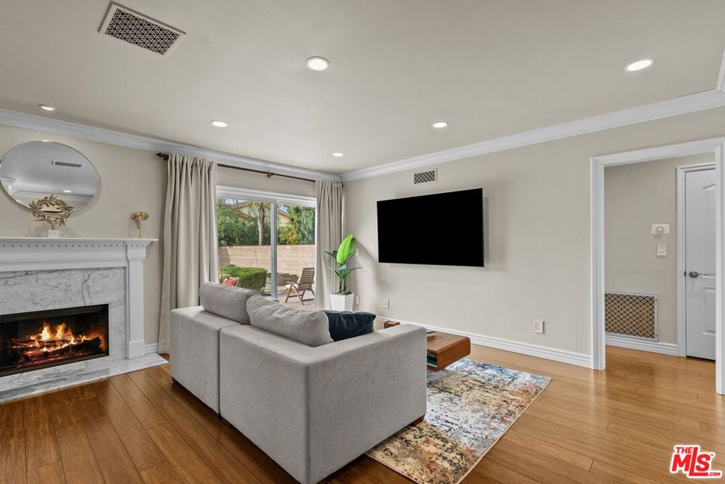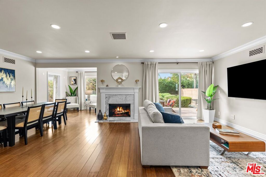 This beautifully upgraded contemporary home is tucked away on a peaceful cul-de-sac in a friendly neighborhood. Featuring 3 bedrooms, 2 bathrooms, and 1,406 sq ft of open living space, this property sits on an 8,235 sq ft lot with native California landscaping and fruit trees. The spacious living and dining area, with a fireplace, crown molding, recessed LED lighting, and sliding glass doors, seamlessly connects to the backyard for indoor-outdoor living. The chef’s kitchen boasts quartz countertops, a farmhouse sink, custom cabinetry with under-counter lighting, and Viking appliances, including a range, refrigerator, and warming drawer. The primary suite offers an en-suite bath with a seamless glass shower and marble-topped vanity. Two additional bedrooms share a remodeled bathroom with a spa tub and marble-tiled shower. The attached two-car garage includes a 220V outlet for EV charging. The backyard features a stamped concrete patio, raised garden beds, and a drip irrigation system for lush landscaping, including lemon, fig, and pomegranate trees. Additional upgrades include a cool roof, copper plumbing, a tankless water heater, 200-amp electrical panel, bamboo flooring, dual-pane windows, and central air and heat with a Nest thermostat. Move-in ready, this home is a perfect blend of modern comforts and timeless charm.