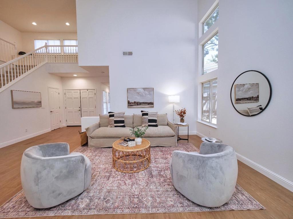 Discover a home where inspired design and everyday comfort blend seamlessly. Tucked within the prestigious Los Cerros neighborhood, with no HOA to worry about, just a thoughtfully updated residence expanding over 3,000 square feet of inviting living space on a peaceful cul-de-sac, set on just under one-third of an acre. Cathedral ceilings and expansive windows invite streams of natural light, creating a warm and uplifting ambiance throughout. The flexible layout features a private den and a separate guest suite, ideal for visitors, extended family, or a home office. All brand new kitchen appliances to allow for true chef experience. Upstairs, two spacious ensuite bedrooms complement a luxurious primary retreat, complete with dual walk-in closets and a well-appointed laundry room. Step into the backyard and experience a personal sanctuary designed for all seasons of life. Enjoy the sounds of cascading water features, stroll the peaceful nature path, or unwind under the trees while kids explore their own dedicated play space. With a built-in BBQ and ample room for entertaining, its a setting made for both relaxation and celebration.