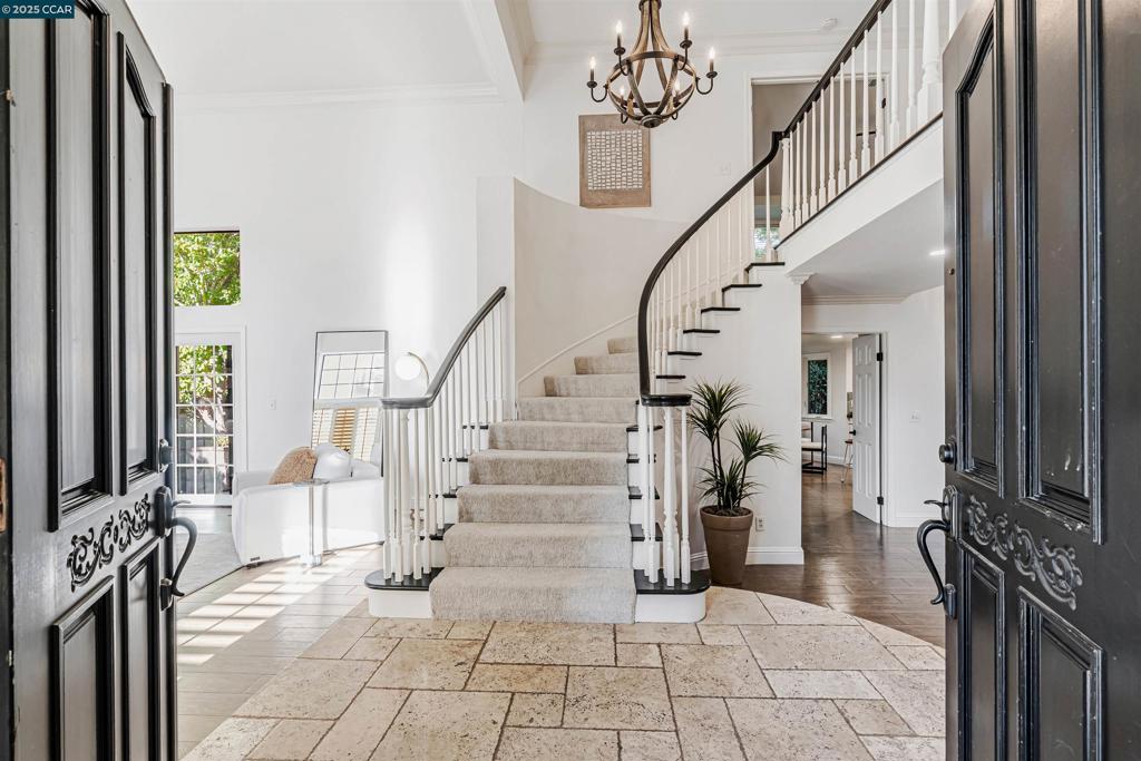 Welcome to this spectacular residence in the heart of Danville’s Wood Ranch neighborhood, where comfort and convenience meet in a spacious setting. Offering 5 bedrooms, 3 full bathrooms, and 2,900 square feet of living space on a 6,500 square foot lot, the home is just moments from the community pool and clubhouse. Inside, soaring ceilings and walls of windows create a bright and airy atmosphere in the formal living and dining rooms. The kitchen is designed for both cooking and gathering, showcasing granite counters, white cabinetry, a large island, and a casual breakfast nook that opens to the family room and backyard. The first floor also includes a versatile bedroom, a beautifully remodeled bathroom with walk in shower, and a convenient laundry room with access to a 3 car garage. Upstairs, a private primary suite serves as a retreat with a sitting area, dual sided fireplace, generous walk in closet, and a spa like bath with soaking tub and separate shower. Three additional bedrooms and another full bath complete the second level. Outdoors, low maintenance landscaping with turf, a patio, and a relaxing spa provide a wonderful space for entertaining or unwinding. This is a home that combines modern updates with everyday livability in one of Danville’s most desirable communities.