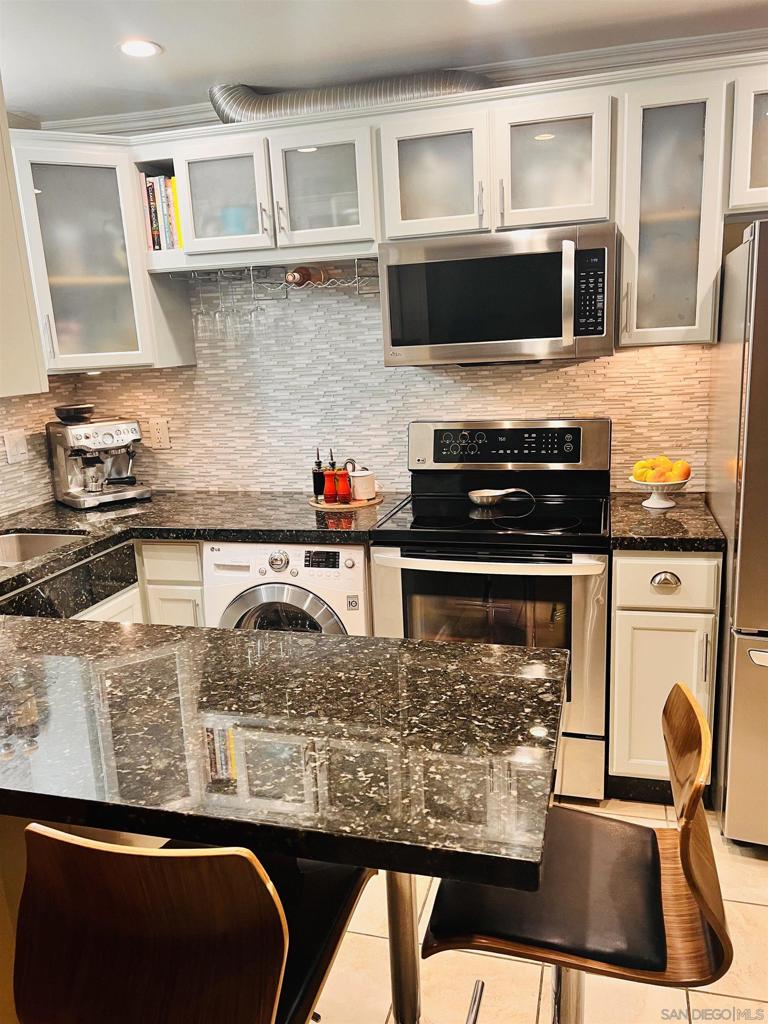 This bright unit is nested in a peaceful green landscaped cul-de-sac open space, with its own very pleasant breezy micro-climate coming from the ocean. Spectacular mountain views. Easy access to I-15 and I-56 which takes you for just minutes to the breathtaking Del Mar beaches and sunsets. You are conveniently close to shopping, dining, entertainment and more. Located in the award-winning top-rated Poway Unified School District. Spacious living area flows smoothly into a modern kitchen with granite countertops and custom wooden cabinetry. Stairs are equipped with hickory hardwood and the second floor features 2 generously sized bedrooms with laminate and 1 gorgeously remodeled with Italian tile bathroom. In the era where energy efficiency is a critical item, mentioning that this home was purposely buildup to have natural airflow throughout carefully laid-out floorpans is important. In this outline, an ultra efficient Pioneer mini split AC/Heater system is conditioning all the spaces well with a unit in the living room and one in a bedroom. This modern residence comes with a Ring Video doorbell which enables to manage your home security remotely from your phone; Honeywell lock that is also controlled remotely to lock/unlock via an app; LED lighting and fixtures throughout. Newly installed dual vinyl windows that contribute to the energy efficiency and comfort as well. Most furniture and appliances are included (ask seller’s agent for detail).