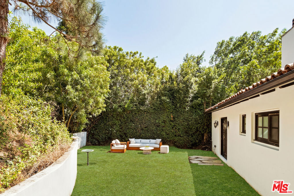 Nestled in a lush canyon in lower Bel Air, and one of the most charming homes on the street, 1132 Chantilly Rd is a single-level, turnkey home featuring three bedrooms and three bathrooms. Set above the street with striking black double front doors, wrought iron lanterns, a brick stairway leads to a covered entry framed in white stone. A wood-burning fireplace anchors the living room, which connects to a dining area that opens to the outdoor terrace through French doors. The kitchen includes Wolf appliances, stone countertops, generous storage, a breakfast nook, and a window-lined area ideally suited for a coffee corner. The primary suite includes its own fireplace, walk-in closet, seating area, and direct access to a private backyard. The en-suite bath features limestone finishes, dual vanities, a soaking tub, and a steam shower with dual heads. Two additional en-suite bedrooms are positioned to bring in natural light through well-placed windows. Surrounded by mature greenery, the outdoor areas offer multiple spaces for lounging and alfresco dining. A compelling offering in lower Bel Air, where location, size, and quality rarely align at this price point.