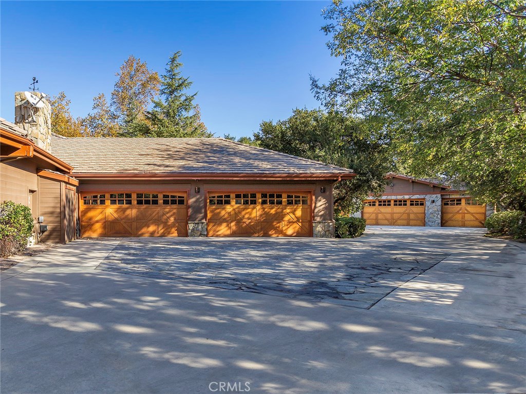 Vacation living all year round. Quiet and private. Set behind private gates & down a long driveway sits this amazing, 6 bed, 6 ½ bath, almost 8,500 square foot estate. Grand architecture with craftsman details. Enormous Great Room/Game Room featuring a wet-bar, built in entertainment center & double-sided stone fireplace with inglenook seating. The remodeled kitchen has granite counter tops, large center island, high-end stainless steel appliances, butler’s pantry & large walk-in pantry. There is also a large wine cellar. The Owner’s suite encompasses the entire upstairs & incl. built-in dual desks, stone fireplace, dual closets, large balcony & exquisite bath with dual vanities, jetted tub & steam shower. No luxury has been overlooked. The additional 5 bedrooms are on the main level & in each you will find a walk-in closet &en-suite bath. Garage parking for 8 cars plus additional RV and motorcycle parking. The approx. 2 ½ acre lot incl. a lighted N/S Tennis Court w/ covered viewing pavilion, fire pit, pitch & putt golf course,Dual BBQ Center & a truly breathtaking fully-tiled pool & spa crowned with a waterfall that cascades from natural rock formations. Truly a resort, no detail was overlooked, no amenity is lacking, and this estate is exceptional in every way. Coveted 24-hour guard gated neighborhood is convenient to 118-fwy, dining, and entertainment.