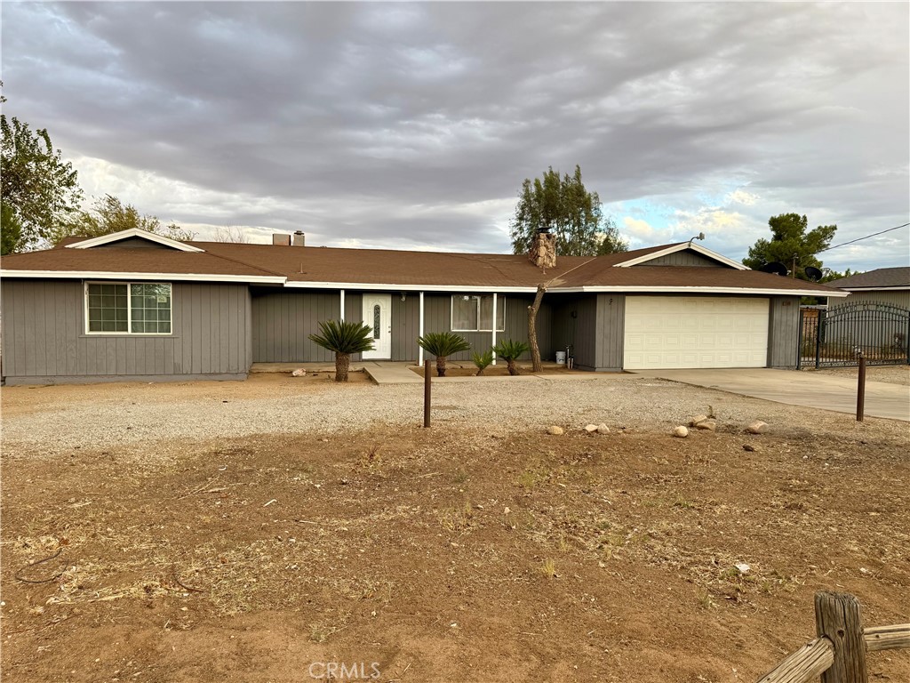 Hesperia 3 bedroom 2 baths, spacious dining and living room combination with a fireplace, good size kitchen granite countertops, newer dual pane windows sliding door, front door, new door connecting to garage, 2 car garage plus a detached garage seller was in the process of an ADU conversion fenced and cross fence, lots of trees, near Bear Valley for easy access to frwy.