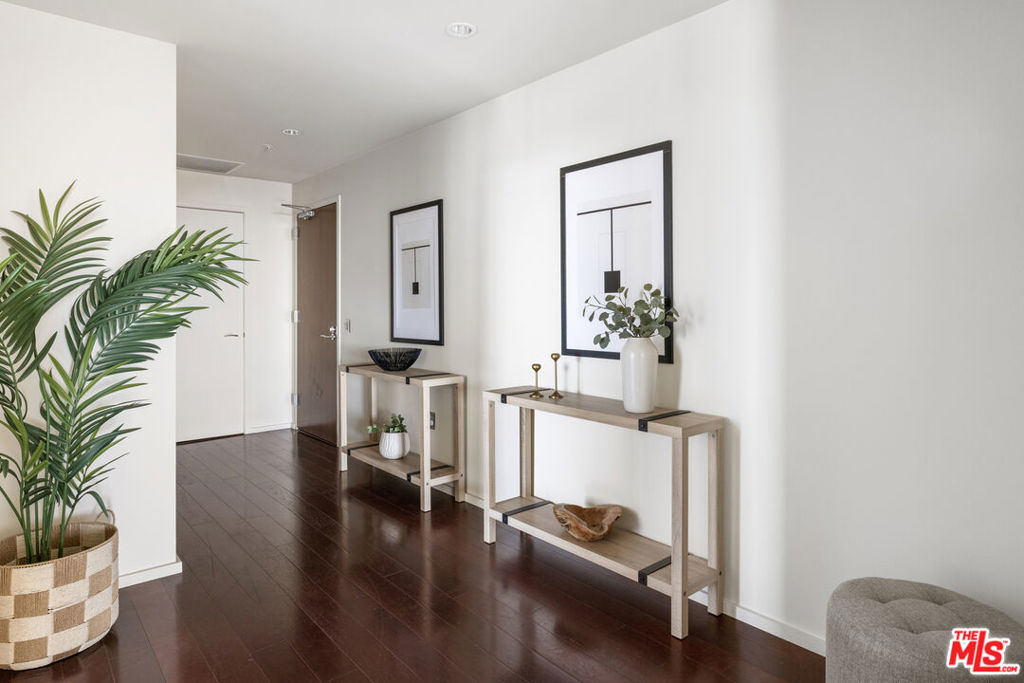 Desirable corner unit at EVO includes a fully-enclosed bedroom. Unit 1204 is part of the “04” stack with views of LA Live/Crypto Arena. This spacious SW corner home with wood floors and electronic shades throught boasts a grand entry with powder room and large utility/laundry room. The primary bedroom features a large walk-in closet and the bathroom included dual sink vanity and tub. Walk down the entry hall to the versatile open floor plan with a living room area, dining room area, kitchen, and plenty of space for a home office. The unit gets plenty of light and the expansive balcony provides a welcome repose and city views. EVO is a LEED-certified Green Building. Amenities include a state-of-the-art fitness center, a 24th-floor residents’ lounge with view terrace and a 6th-floor outdoor terrace with glistening pool, spa, sundeck, BBQ grills, and a full kitchen area with flat-screen TVs. Situated on arguably the best block in DTLA, this vibrant neighborhood features Pine & Crane, Orange Theory Fitness, South Park Pharmacy, Starbucks and more. Plus, you’re just moments away from the Crypto.com Arena, LA Live, Ritz-Carlton, and the Pico Metro Station, making commuting a breeze. With a Walk Score of 95 and a Transit Score of 100, you may never need a car again. Downtown LA is undergoing major transformations in preparation for the 2028 Summer Olympics, with billions being invested into development, including new infrastructure and upgrades. Buy into the future of LA today!