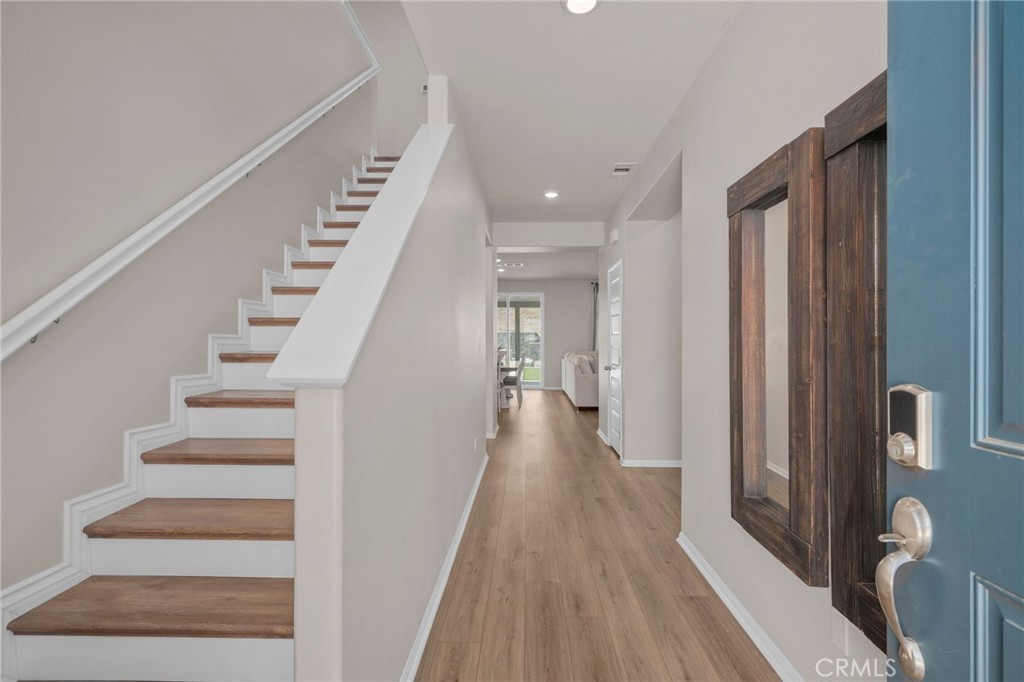This stunning home boasts excellent curb appeal, pristine upkeep, and low-maintenance landscaping, all with a beautiful view of the local mountains. One of its most valuable features? A fully paid-off solar system—providing significant energy savings from day one with no lease or loan to assume! Step inside through the elongated entryway to find stylish LVP flooring that flows throughout the main level. A versatile den or home office sits near the front of the home, along with a guest bedroom and a full bathroom featuring a charming shiplap accent wall. The spacious family room is the heart of the home, showcasing a cozy fireplace framed with a custom shiplap enclosure. The open-concept kitchen overlooks the family room and dining area, offering a large kitchen island, quartz countertops, porcelain tile backsplash, walk-in pantry, and built-in cooktop—perfect for both everyday living and entertaining. Upstairs, you’ll find a massive loft, an oversized primary bedroom retreat with a deep walk-in closet, and a spa-like primary bath with a walk-in shower. Three additional bedrooms, a bathroom with dual sinks, and a convenient upstairs laundry room complete the second floor. The backyard is an entertainer’s dream, featuring a large covered patio with lighting and ceiling fans, stamped concrete, a built-in fire pit, rock wall, lush green grass, and beautiful landscaping. A 3-car tandem garage offers plenty of parking and storage space. Best of all, this home backs up to a large park with a walking trail, sports court, and playground—perfect for outdoor enjoyment. Immaculately maintained inside and out, this property showcases true pride of ownership. With the added bonus of fully paid-off solar, this home is not only beautiful—it’s energy efficient and cost-effective for years to come! This vibrant new community offers an array of amenities, including swimming pools, a splash pad, playground, scenic walking trails, a sports court, fitness center, clubhouse, and so much more!