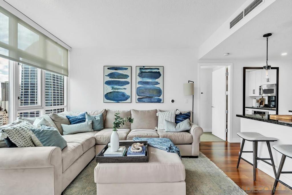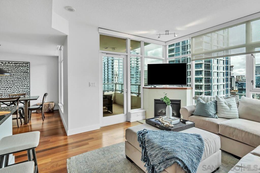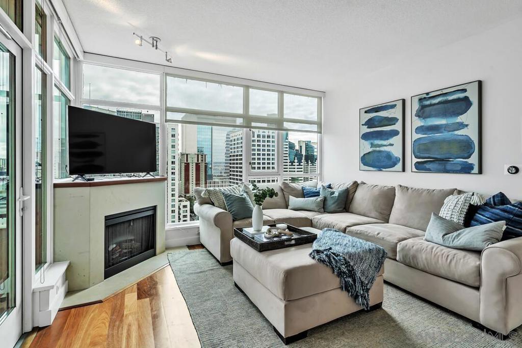 Large, nicely-furnished 1 bed/1.5 bath condo with breathtaking views on the 19th floor! Live in a premier building with premium amenities just a few blocks from Little Italy. Enjoy the open layout, large patio, triple pane floor to ceiling windows, electric fireplace and more. Reserved underground parking space with outlet for EV hookup. Building amenities include concierge, gym, swimming pool, sauna, steam room and a 1 BR apartment rental available for your out of town guests. Available 2/1/25.