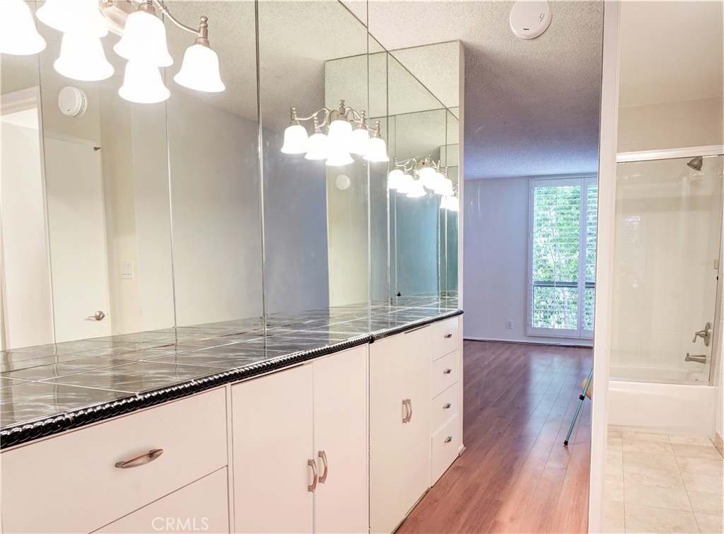 Wonderful 2 bedroom, 2 bath south facing condo perfect for entertaining and steps from the Wilshire Corridor! The spacious dining room and kitchen feature recessed lighting, beautifully tiled floors and an ideal floor plan which opens to the large living room w/fireplace and great outdoor private patio. Primary suite with bathroom, additional cabinetry and vanity and huge walk-in closet which is opposite the living room from the other bedroom and bath providing extra privacy. Amenities include pool, spa, exercise room and sauna. Abundant closet space and 2 gated and secure parking spaces. Excellent location