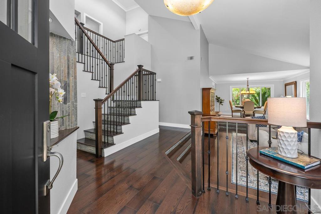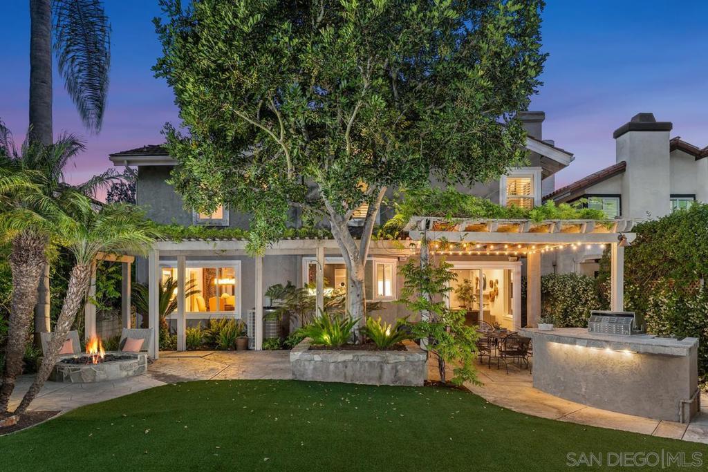 Welcome to this stunning 5BR, 3BA executive home with a bonus room, ideally located in the tranquil Loire Valley community of Scripps Ranch—just south of Pomerado. Situated on a desirable cul-de-sac, this residence offers access to Loire Valley HOA amenities including a pool, spa, tennis courts, and scenic greenbelts. With 3,430 sq. ft. of thoughtfully designed living space, this home combines elegance with everyday comfort. The expansive living room features soaring vaulted ceilings, while the inviting family room with a cozy fireplace is perfect for relaxing. The chef’s kitchen showcases stainless steel appliances, elegant cabinetry, and a large island with seating and prep space. Rich wood and natural stone floors add warmth and character throughout. A full bedroom and bath on the main level provide ideal accommodations for guests or multi-generational living. Upstairs offers four additional bedrooms plus a versatile bonus room. The primary suite includes its own fireplace and a spa-inspired bath with soaking tub, skylight, and dual walk-in closets. Step into the private backyard oasis with lush landscaping, artificial turf, multiple patios, a pergola, outdoor kitchen, and firepit—perfect for entertaining. Membership to the highly coveted Scripps Ranch Swim & Racquet Club is included.