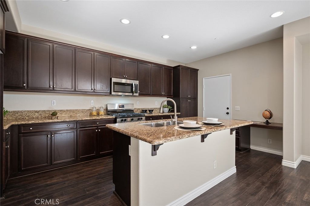 This end-unit townhome located in the heart of Eastvale offers the perfect blend of modern upgrades and comfortable living. One of the largest floor plans within the gated Serafina community, with 4 bedrooms, a Loft and 2 and a half bathrooms. The open-plan living room is perfect for relaxation and entertaining, with large windows allowing for ample natural light. The modern kitchen includes a breakfast bar, built in microwave and granite countertops. The dining area flows effortlessly from the kitchen with access to a private patio. The primary bedroom has a walk-in closet, dual sinks, a walk in shower & separate tub. The versatile loft offers an ideal spot for a home office or a den. Upstairs laundry room and an attached 2 car garage. Residents enjoy access to a state-of-the-art recreation center, featuring a refreshing swimming pool, spa, outdoor fireplace, play area, sport/basketball court, as well as numerous BBQ areas with picnic tables. Close to shopping, dining and Eastvale Gateway, with nearby access to the 15, 91, and 60 freeways.