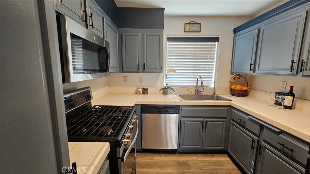 Amazing Upgraded 3-bedroom,2-bathroom, 2-story condo with a 2-car garage. Pull into your gated community and park in your 2-car garage with extra outside parking spaces, that makes you feel very safe. Once inside, you’re welcomed by a beautiful space with warm designer colors, stylish walls, wood floors, scraped ceilings, recessed lights, crown molding, custom shutters and a fireplace. This home has been beautifully remodeled, with a renewed kitchen. The kitchen is beautiful with fresh paint, newer trendy knobs and a newer farm stainless steel sink. Motorized curtain in the living room. There are 2 bedrooms on the first level and a beautiful, remodeled, full bath. There are 2 cozy balconies with access from the living room and access from the master bedroom, that you can watch Disney fireworks from. Central A/C & ceiling fans in every room. Head upstairs to the HUGE, primary suite where you’ll find 3 closets with another beautiful, remodeled bathroom and a private balcony. This home is an end unit with a staircase separating the neighbor. It is move-in ready. It’s situated away from the noisy street and is quiet and private. It’s walking distance to downtown Garden Grove where there are restaurants and shopping including a supermarket, Costco, Home Depot, etc. Located at the city center, the library, main police station and City Hall are nearby. This home has a light and bright vibe. You’ll love calling this place, “home”. Water and trash are included in the HOA fee.