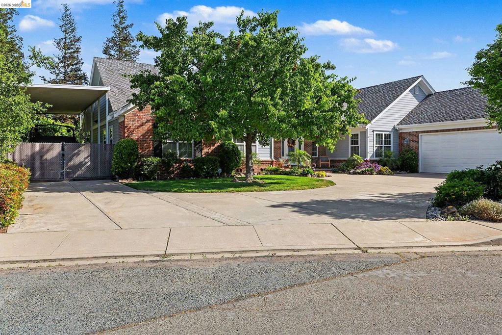 This beautifully appointed custom home on a corner lot with remarkable curb appeal, a roundabout driveway, and a 3-car garage with over 800 sq. ft. This single-level gem features a grand living room with coffered ceiling divided into a grid of recessed panels framed by beams. The living room includes a 6-panel sliding patio door that brings the outdoors in. The dining room offers tray ceilings, wainscoting, and decorative moldings. In addition, the flexibility to serve as a den or 4th bedroom. The kitchen impresses with pitched wood paneling and wood-beamed ceilings, a 6-burner gas stove, double oven, stainless steel appliances, and abundant cabinetry. Relax in the luxurious primary suite with tray ceilings, jetted tub, walk-in shower, dual vanities, and large closet. Spacious secondary bedrooms and a large laundry room with full countertop and ample cabinet storage. Forced air heating & cooling with 2 zones keeps the home comfortable year-round. Outside, enjoy a private backyard oasis with a covered patio, waterfall, and koi pond on over 1/3 acre. Side yard provides full RV/boat access with hookups, perfect for entertaining and everyday living.
