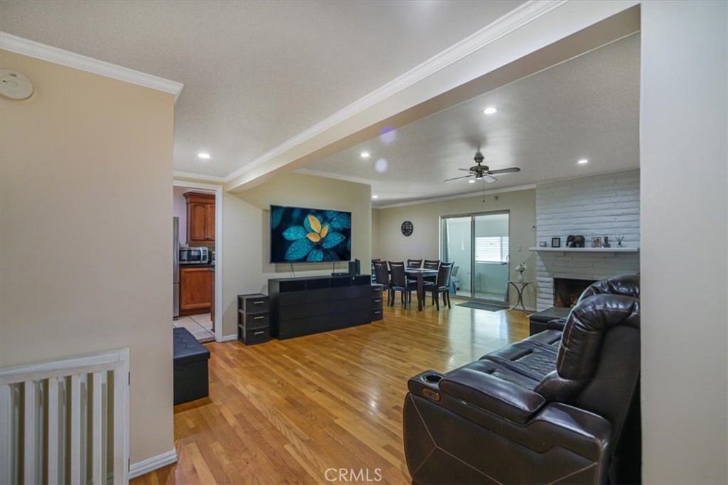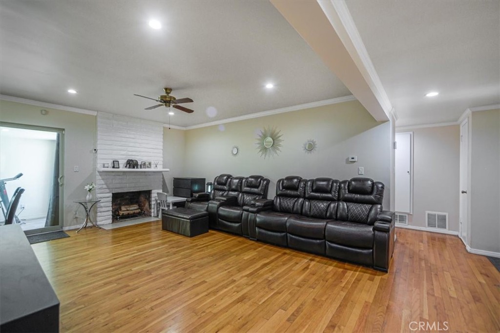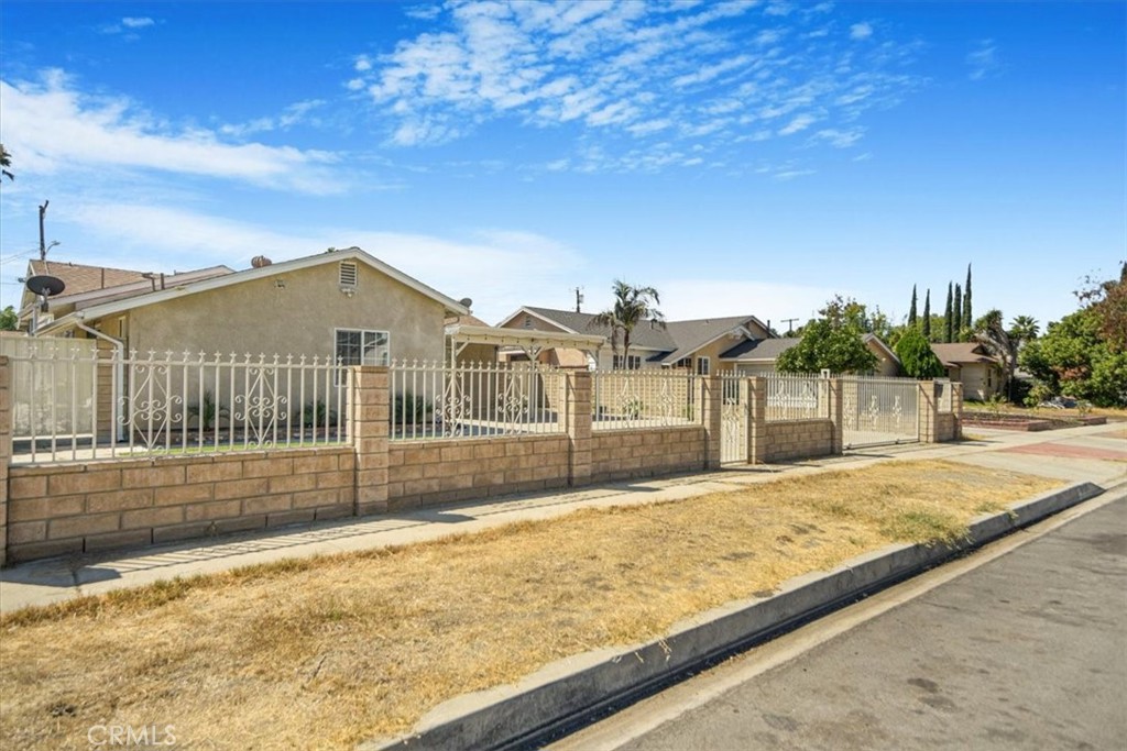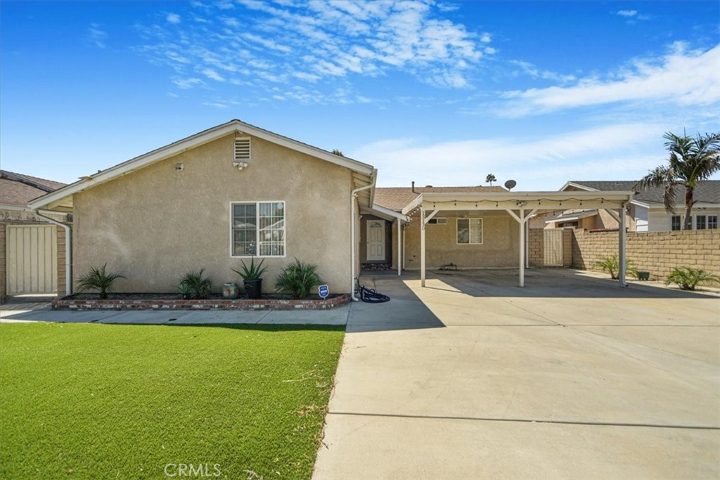 Welcome to this versatile 4-bed, 3-bath home offering 1,402 sq ft of well-designed living space on a generous 6,001 sq ft lot. Step inside to a bright living room centered around a classic brick fireplace, with recessed lighting and hardwood floors leading into a spacious dining area and galley kitchen featuring rich cabinetry, granite counters, and a full suite of appliances. Freshly painted with recently updated bathrooms, this home is truly move-in ready. Beyond the main living areas, the property offers tremendous flexibility: the garage has been converted into an addition with permits, creating a self-contained studio with its own bathroom—perfect for extended family, guests, or rental income. Outdoor living is equally inviting, with a large paved patio under a covered pergola strung with lights, low-maintenance turf, and ample driveway parking behind a secure gate. The home also features a leased solar system that the buyer may continue if preferred, helping to keep utility costs down. Ideally located near major freeways, shopping, churches, and hospitals, this property delivers comfort, convenience, and income potential all in one!
