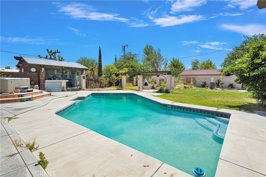 Prepare to make a grand entrance through the double doors of this fabulous Apple Valley home – they practically demand a dramatic flourish or maybe a cheeky curtsy! The living room fireplace is just waiting for you to break out the marshmallows and ghost stories, or perhaps just a good book and a glass of wine. With a split floor plan that’s cozier than a rom-com love triangle, the primary bedroom even has its own secret garden entrance for those late-night escapades to the backyard oasis. Hosting a soirée? The formal dining area and dry bar are ready to show off, while the living room has more elbow room than a dance floor at a royal ball! And the backyard? It’s a veritable playground for grown-ups, with an in-ground pool, private spa, adobe fireplace, and bar – all set on a nearly half-acre lot where you can play hide-and-seek with the sheds or just roam free like a monarch of your own mini-kingdom!