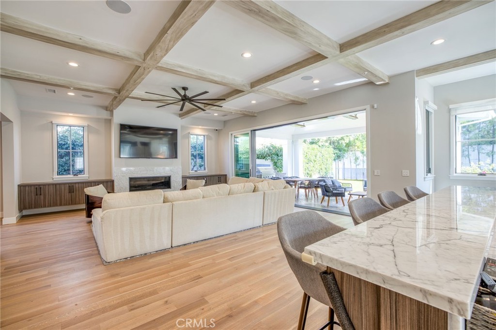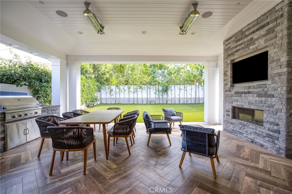 Experience refined coastal living in this beautifully refreshed Manhattan Beach estate by Zivec & Corbett Development, originally built in 2016 and updated in 2025 by the original builder. Designed by esteemed architect Doug Leach, this modern beach plantation–style residence sits proudly on a premium corner lot, combining timeless design with the feel of new construction. The home offers 6 bedrooms plus a dedicated office, 6 bathrooms, a rare 4-car garage, and a spacious, private backyard. Inside, fresh finishes and thoughtful upgrades enhance the already impeccable craftsmanship. White oak floors run throughout, paired with farmhouse-inspired fixtures, a Vantage lighting system, and a climate-controlled wine room with capacity for over 350 bottles. The chef’s kitchen is a true centerpiece, featuring an oversized center island, Thermador professional appliances, full-size side-by-side refrigerator and freezer, a farmhouse sink, chic hexagon tile backsplash, a butler’s pantry, walk-in pantry, and a sunny breakfast area. The family room blends comfort and style with custom built-in cabinetry, a panoramic fireplace, and a dramatic wall of sliding glass doors that open completely to the covered outdoor living room. Here, you’ll find a built-in BBQ, outdoor fireplace, overhead heaters, and herringbone wood-grain tile floors, perfect for year-round entertaining. The backyard is lush, private, and pre-plumbed for a future swimming pool and spa. A guest suite is located on the main level, while upstairs offers five additional bedrooms, including the expansive primary suite with dual walk-in closets and a spa-worthy bath featuring a glass mosaic tile floor inlay. Meticulously updated and move-in ready, this home captures the essence of the Manhattan Beach lifestyle…timeless, sophisticated, and designed for both relaxed living and elegant entertaining.