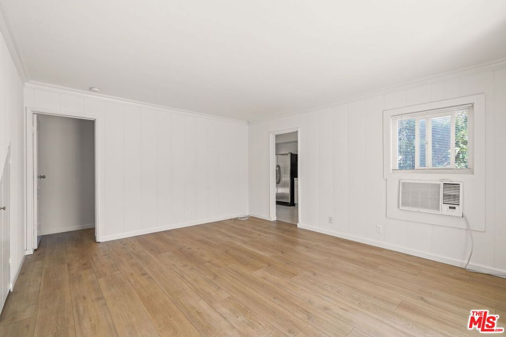 Light and bright one-bed, one-bath unit in Van Nuys with fresh wood flooring throughout. Enter into an open living room that features a wall-mounted AC unit, a storage closet, and sliding doors leading to a private balcony. This flows seamlessly into a well-equipped kitchen with room for a dining nook, and the additional sliding door invites in natural light and fresh air. The bedroom features a ceiling fan, closet, and an en-suite full bath. Comes with one assigned driveway parking space. Conveniently located with easy access to the 101 and 405, and just minutes from the dining, shopping, and entertainment of Sherman Oaks and Studio City.
