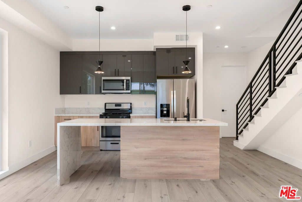 Newly finished 3-bedroom, 3-bath luxury townhome located in the heart of Sherman Oaks on a private, gated cul-de-sac. This front-facing unit offers beautiful street views and the feel of a single-family home, with a peaceful, quiet setting both inside and out. Thoughtfully designed with high-end finishes, the spacious layout includes a fully equipped kitchen with brand-new appliancesrange, refrigerator, microwaveand in-unit laundry. Enjoy direct access from your private 2-car garage, ample storage throughout, and modern comforts in a secure and serene complex. Just a short walk to popular restaurants, cafes, and local amenities.