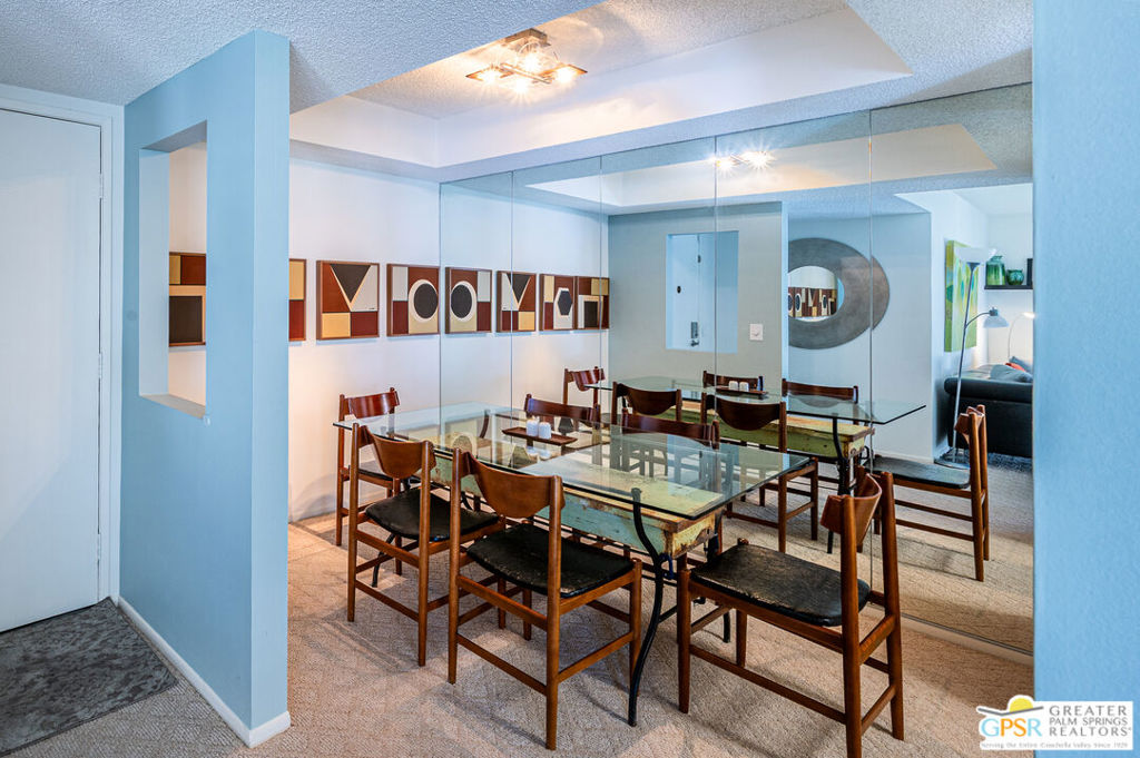 Here’s your chance to own a stunning top-floor end unit in Phase III of the historic Biltmore community of South Palm Springs, offering panoramic mountain and palm tree views from your private, penthouse-like perch. Boasting over 1,100 square feet of meticulously maintained space, this professionally decorated residence seamlessly combines luxury, comfort, and convenience. This spacious unit features two separated bedroom suites with ample closet space, perfect for privacy and comfort. The sun-filled covered patio, accessed through three glass sliders, provides an ideal retreat to enjoy breathtaking views. The stylish interior showcases premium carpeting and soundproof vinyl plank flooring, creating a quiet, refined ambiance. The updated kitchen is adorned with granite counters, stainless steel appliances, updated hardware, and a reach-in pantry. Newer Hunter Douglas shades cover the recently serviced sliding glass doors that were upgraded with new screen doors. The AC unit has been serviced and has a new condenser. The unit is turnkey furnished per the inventory, with a few exceptions. Enjoy the modern amenities of the building, including a secure face ID entry system, elevator access, a nearby laundry room, and a storage unit. The private complex offers a refreshing large pool and spa, covered patio seating with BBQ grills, and lush, landscaped grounds. Conveniently located near Deepwell and Tahquitz River Estates neighborhoods, just minutes from the vibrant downtown Palm Springs, with its restaurants, shops, and entertainment. Walk to popular hangouts like the ACE Hotel, The Reef tiki bar and Sancho’s Cantina at the Caliente Tropics, or dine at the Villa Royale or Elmer’s. You’re right there! This residence is perfect as a luxurious full-time home, vacation retreat, or income-producing property – you can rent it for 30 days or more. Pets are welcome with restrictions, and the community’s safety and privacy make it a true sanctuary. Don’t miss the opportunity to own this exceptional, turn-key property in one of South Palm Springs’ most sought-after locations. Schedule your private showing today!