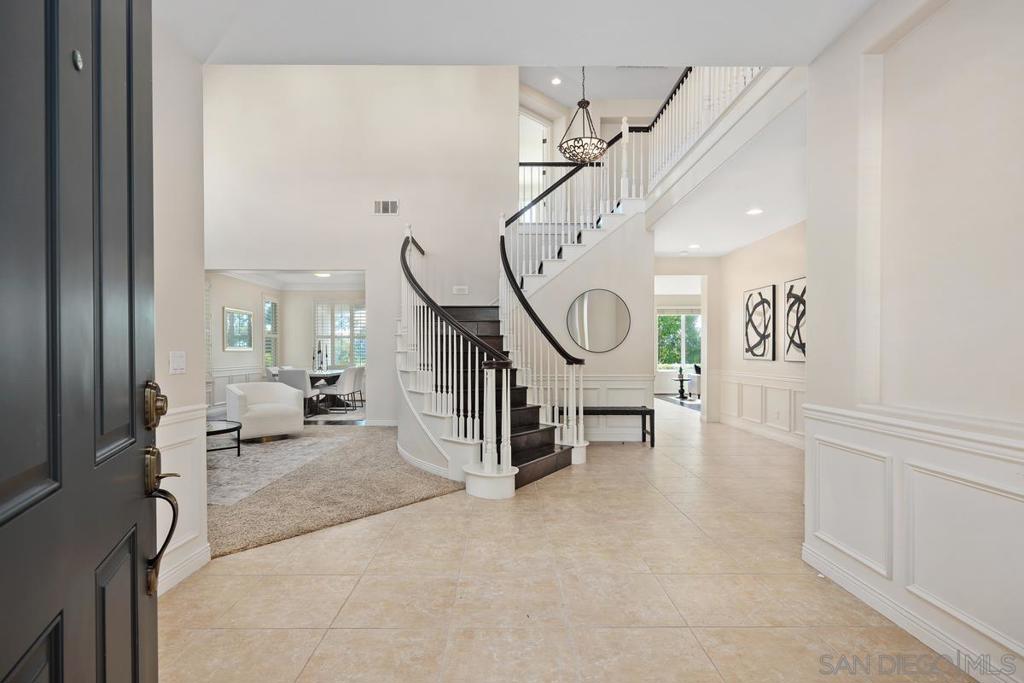 Spacious family home located in the gated community of Promontory Ridge. Walking distance to downtown San Elijo Hills, San Elijo Elementary and Middle Schools. Upon entering this home your senses are awakened by soaring ceilings, tall windows and streaming natural light. Impeccably maintained it offers large bedrooms, a majestic spiral staircase, custom wainscoting, large family style kitchen, formal dining area, whole home solar, attached 3 car garage and a private and spacious backyard with no neighbor behind you. Open concept floor plan offering both a living room and family room with a fireplace open to the kitchen area for easy entertaining and family meals. Cool and calming breezes frequently stream throughout the home from the two upstairs balconies and many windows. Wind down and awaken each day to colorful sunsets and beautiful sunrises! This home has 4 bedrooms, one downstairs adjacent to a full bath. The large upstairs bonus room can easily be converted to a fifth bedroom if desired. Hurry this property is priced to sell and the perfect canvas to create your dream home! Please see Supplemental Remarks for an explanation of the cumulative days on market, first showings for this home is the same as the MLS activation date of September 29th. Cumulative DOM (days on market) shows 92 days as the listing agreement was signed June 27th. MLS activation date is September 29th. The first showings and marketing of the property is the date of activation in the MLS 9/29/25. The delay was due to the availability of wood flooring materials needed for repairs in the upstairs bedrooms.