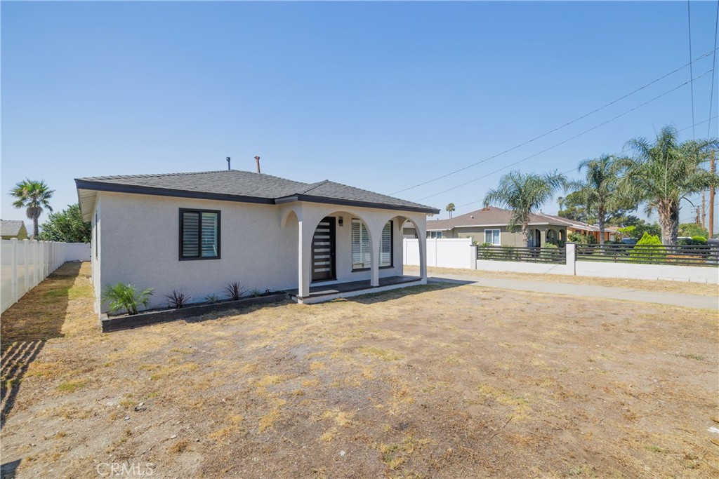 This charming, beautifully remodeled three-bedroom, two-bathroom property is a gem waiting to have someone call it home. As you walk through the front door, you enter a spacious living room with a large window to give plenty of natural light. There is engineered hardwood flooring throughout the house. The master bedroom has a private bathroom, a walk-in closet, and a door that leads to the spacious backyard. The second and third bedrooms both have closets with built-in drawers. The kitchen area is spacious, with room for an island and a dining area. The backyard is an excellent space for entertaining, offering numerous possibilities. There is also a large orange tree that gives an abundance of fruit. The long driveway allows for ample parking for yourself and guests, along with a single-car garage. The garage has a vehicle door on both sides, allowing you to pull through if needed and store a boat, trailer, or other vehicles. Behind the garage is a large structure that could be used for storage, office space, or other purposes. This storage area has so much potential and is already hooked up with electricity and a sink with running water.