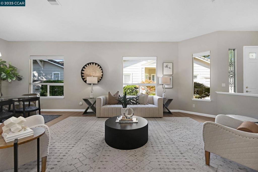 This spectacular single-story condominium is located on a quiet tree-lined street in the prestigious Devonshire neighborhood in Rossmoor. This desired Churchill model has approx. 2300 sq.ft., 2 bedrooms, DEN, formal dining area, office, plus 2.5 baths. Outstanding features include Level-in access with no one above or below. All white modern kitchen with center island and breakfast nook. Spacious family room with fireplace overlooking the back patio. Large Primary suite with a walk-in closet. High soaring ceilings, recessed lighting, custom plank flooring, and dual-pane windows. Attached 2-car garage with lots of storage. Beautiful private patio with arbor, rose garden, and lush wooded setting for entertaining or private times. Only a short walk to Tice Creek Fitness Center and Pools. This is an absolutely magnificent home! Provide Signed Disclosures with an Offer.