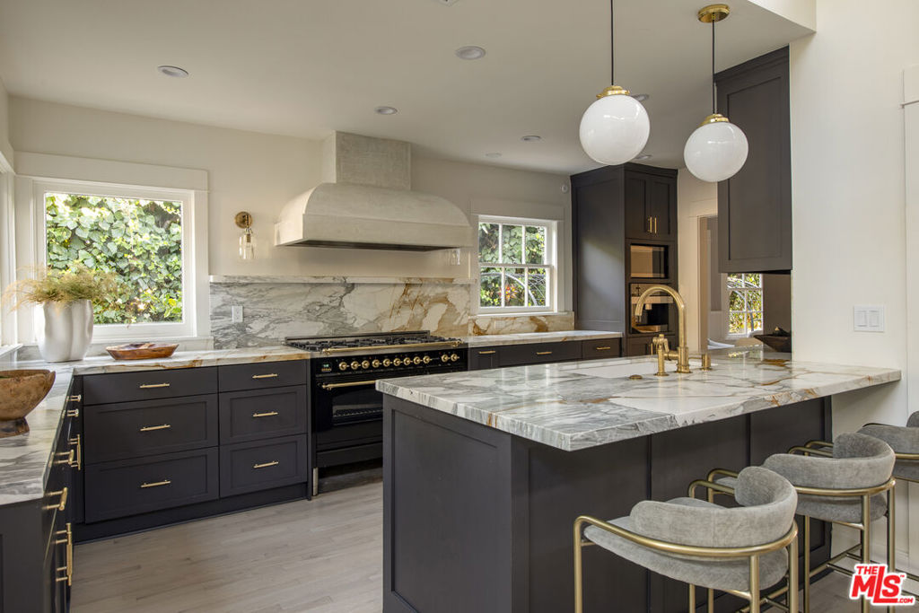 Gorgeously remodeled house with a pool available in prime Hollywood Hills location! Gated and private, this stunning home offers 3 bedroom/2 bathroom plus an office and gym and was completely updated with high-end designer finishes throughout, including hardwood floors, slab marble counters in the kitchen and bathrooms, linen wallpaper, new light fixtures, and top-of-the-line appliances. The primary bedroom suite is a heavenly retreat, offering a custom closet, French doors to the back patio, and a luxurious bathroom featuring a Catchpole & Rye brass soaking tub, marble trough sink, slab marble rainfall shower, and herringbone wood floors. 2 additional bedrooms share the jaw-dropping guest bathroom, with Moroccan zellige glazed tile walls and floor. The outdoor spaces are just as inviting, from the backyard oasis with the large, sun-drenched pool and spacious deck, to the front yard, with calming water feature, seating area and front porch. Additional highlights include Bosch washer/dryer, the converted garage, ideal for gym/office/studio/hangout space, with extra bonus room, and gated driveway parking. Amazing central location, just around the corner from Runyon Canyon and Wattles Garden Park, and minutes from Hollywood, West Hollywood, Sunset Strip and so much more! Available furnished or unfurnished.