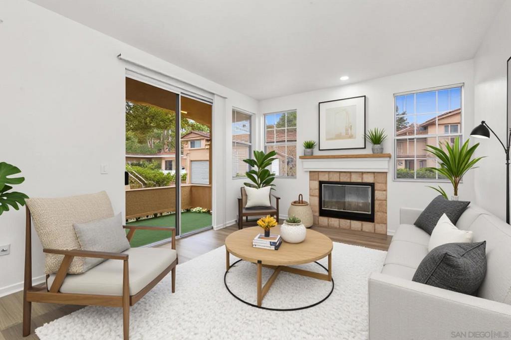 With brand new flooring and upgraded countertops throughout , this home is Priced to sell quickly!! Combining location, lifestyle, and value, a true opportunity to own in one of North County’s most vibrant communities- Rancho Bernardo. This home is situated within a gated neighborhood known for its resort-style living and peaceful surroundings. This beautifully maintained entry-level condo offers comfort, convenience, value, & opportunity! Step inside to discover a bright and inviting layout filled with natural light, where a cozy fireplace anchors the living space and a private patio invites you to unwind & enjoy the tranquil setting. The kitchen flows effortlessly into the dining area. Practical touches like in-unit laundry and assigned parking add ease to your daily routine, while the community amenities elevate your lifestyle. This unit gives you exclusive access to Morada’s private pool & spa, as well as Bernardo Vista Del Lago’s larger offerings: heated pools, tennis and basketball courts, a fitness center, and a beautiful clubhouse perfect for gatherings. Set within the award-winning Poway Unified School District and award winning schools. Surrounded by scenic hiking trails and an abundance of nearby shopping and dining, the area continues to thrive as one of San Diego’s most dynamic regions. With the steady growth of nearby tech companies expanding in Rancho Bernardo and along the I-15 corridor, this location offers wonderful lifestyle but also a smart investment opportunity w/ strong rental demand and long-term appreciation potential. Virtual staging was used.