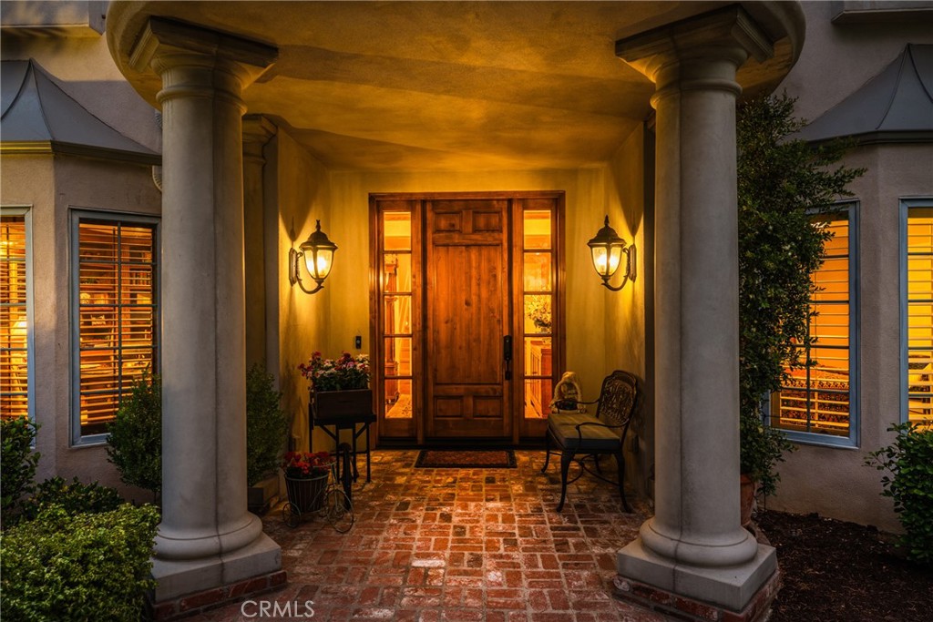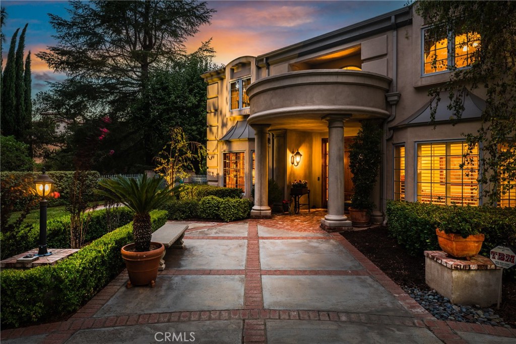 Chasing luxury, privacy, and a golfer’s paradise? Here is your ace! Within a friendly, well-maintained neighborhood, this South Redlands modern neo-classical estate is as close as you can live to the exclusive Redlands Country Club. Through the security gate, enter a spacious circular driveway surrounded by a beautifully & meticulously landscaped lawn and rose garden. A grand pillared portico lends an elevated air to this prestigious estate! Inside, you are greeted by a formal entry with intricate parquet wood floors and a gorgeous staircase with turned railings. Lounge at the end of your day in the family room or living room, by the warmth of two fireplaces. Or come outside and unwind on the roomy, covered brick patio with a view of the manicured gardens. Jump into a tiled pool in the summer or soak in your private spa all year-round. Your backyard oasis is surrounded by a tall, lush privacy hedge and stately cypress trees. From here, follow your own private walkway that leads you right out onto the seventh tee. For the home cook and host, your gourmet kitchen sports plenty of granite countertops and an island. Here, find a slew of upgraded appliances, including a Sub-Zero fridge, Thermador gas cooktop, and a double oven and dishwasher by Whirlpool. Host dinners in your formal dining room or have a quick meal in the sunlit breakfast nook. All bedrooms but one feature walk-in closets. Your second-story primary suite is spacious with an additional sitting/dressing area. From your primary bedroom, you’ll enjoy immediate deck access, so you can take in the early morning sunshine to start your day! In your ensuite bathroom, enjoy the convenience of a separate walk-in shower and soaking tub. Bathrooms have been upgraded with granite and tile. Back downstairs, work from home or curate your personal library in a mature study with custom-built-in hardwood shelves and tons of room. A large inside laundry room has a utility sink and an ironing/sewing space. Includes an attached three-car garage, plus a single garage space that can be converted into a space for your golf cart. The estate is protected by a home security system. Solar panels power the home and pool. Part of the highly-rated Redlands Unified School District. Schedule your private showing today!