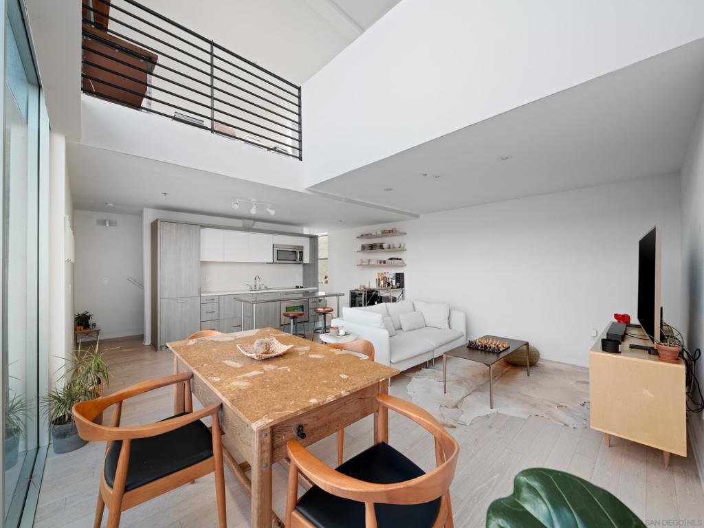 Experience trendy Little Italy living at “The Titan”: a unique four-story, 2Bed/2Bath condo/loft created by iconic architect and developer Jonathan Segal FAIA. It is freshly painted, has full sized washer & dryer, 1 parking spot in gated area, partially furnished (sofa, living room TV credenza, wine fridge, electric stove, microwave, fridge, stainless steal kitchen table, bedroom dresser & queen sized memory foam bed with frame), unmatched curb appeal with a 18-ft floor-to-ceiling windows and 200 sq/ft private use covered rooftop “birdcage” which showcases views from East to West. Condo is READY for you to move in now!