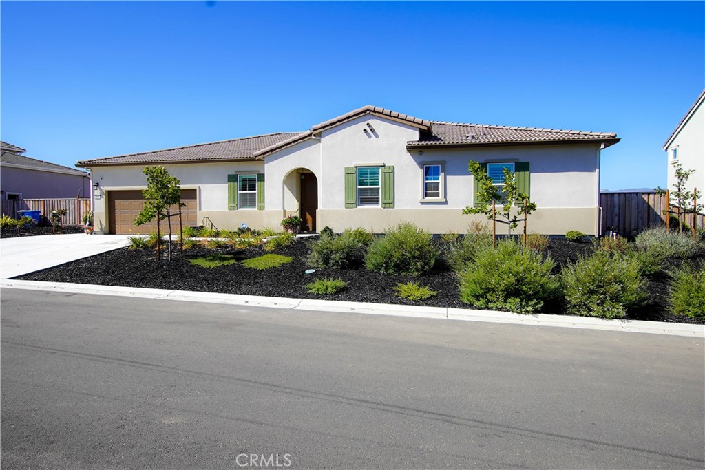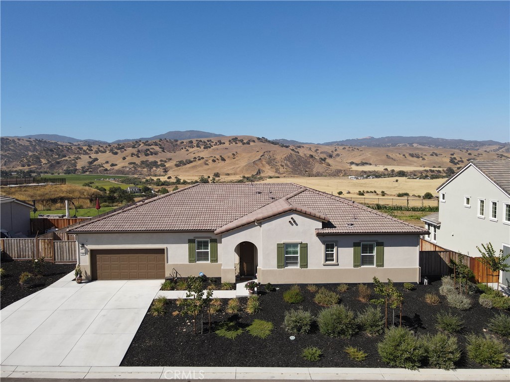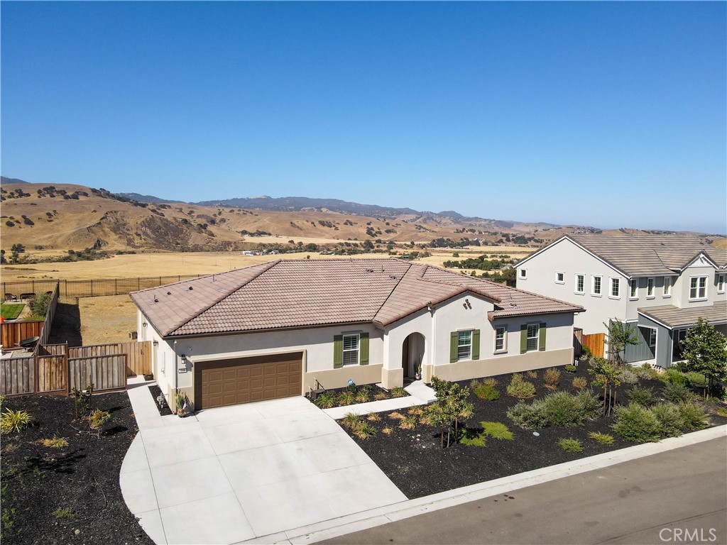 Discover modern luxury living in this stunning Spanish-style home, built in 2023, less than two years old. Nestled in the prestigious Promontory at Ridgemark gated community. This single-story residence offers 2,672 square feet of beautifully designed living space on an expansive 16,000+ square foot lot. Additional cement was added for a total of three pads for ample parking The home showcases an attached one bedroom, one bath ADU with living room, full kitchen, its own wash and dryer plus a private patio entrance, perfect for extended family or guests. Enjoy breathtaking mountain views, a spacious backyard retreat, and the peace of mind of paid off solar for energy efficiency. The oversized lot provides endless possibilities for outdoor entertaining, gardening, or adding personalized touches to this blank canvas, creating your dream backyard escape. Inside, you’ll find open-concept living with timeless elegance and comfort. Spacious kitchen with quartz countertops, modern cooktop and beautiful cabinets. Expansive breakfast bar with plenty of seating. Separate Dining area and open concept living room with fireplace perfect for entertaining. This home also features an in-home office with custom built-ins, perfect for hybrid work schedules. This home combines modern amenities, energy efficiency, and classic architecture in one of Hollister’s most desirable communities.