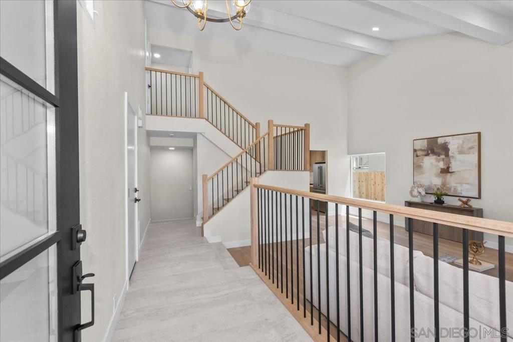 Don’t miss this exceptional coastal residence located in the highly desirable Village Park community. This fully remodeled four-bedroom, four-bathroom home showcases modern luxury and thoughtful design throughout, situated on a generous 6,000 sq. ft. lot. Upon entry, you are welcomed by vaulted ceilings and abundant natural light that enhance the open and spacious living area. The gourmet kitchen features waterfall-edge quartz countertops, custom light oak cabinetry, a designer quartz backsplash, and top-of-the-line stainless steel appliances. A large center island with integrated seating and elegant pendant lighting provides the perfect space for everyday dining or entertaining. Expansive 12-foot cantina-style sliding glass doors create a seamless connection between indoor and outdoor living, opening to a beautifully landscaped backyard ideal for relaxation or gatherings. Wide-plank luxury vinyl flooring and a neutral color palette lend a sophisticated, contemporary ambiance throughout the home. The flexible floor plan includes primary suites on both the main and upper levels, offering convenience and privacy. Each bathroom has been meticulously updated with custom vanities, designer finishes, and premium fixtures. Located on a quiet street just minutes from award-winning schools, pristine beaches, local parks, shopping, and top-rated dining, this turnkey home offers the perfect combination of style, comfort, and location.