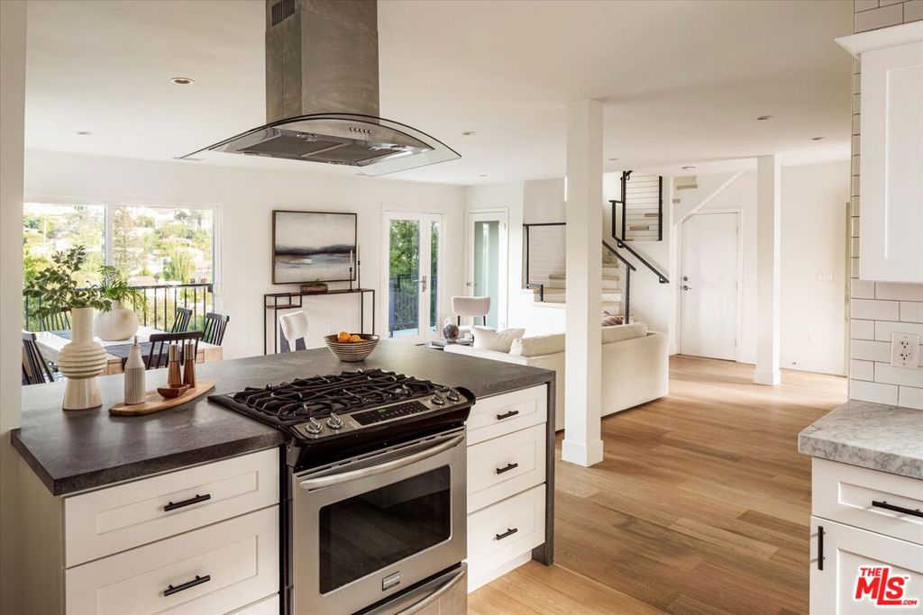 Reduced! Perched in the sought-after Franklin Hills of Los Feliz, this contemporary view home blends functionality with flair- perfect for creatives, entrepreneurs, and entertainers alike. The property offers generous space and remarkable versatility with a 3-bedroom + office main home, detached guest suite, and a separate 287 sf studio with loft. The open-concept main level flows effortlessly to a spacious deck ideal for dining and hosting. Upstairs, you’ll find three bedrooms, two bathrooms, and a sunny office with French doors, along with a balcony that frames panoramic hillside and mountain views. The detached guest suite, complete with kitchen, bathroom, and bedroom, is ideal for long-term visitors or income potential. Below, the separate studio boasting vaulted ceilings and abundant natural light is your home base creative haven. Whether envisioned as a podcasting suite, painting studio, or home gym, the possibilities are endless. Just outside, the lounge area offers yet another inviting space to gather or unwind, and offers access to the terraced lower yard. Life in the Franklin Hills uniquely offers easy access to the vibrant dining, shopping, and every day amenities of both Los Feliz and Silver Lake.