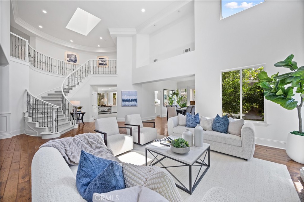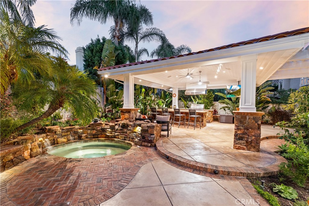 Welcome to 2175 Palmer Place, a grand executive estate tucked within the guard-gated and prestigious San Marino community. This stately 5-bedroom + office, 4.5-bathroom residence offers 4,461 square feet of thoughtfully designed living space on an expansive 8,400 square foot lot. Upgraded throughout with rich wood flooring and plush carpet, fresh paint, thick crown moldings and baseboards, plantation shutters, and elegant wainscoting, the home blends timeless elegance with modern comfort. A dramatic double-door entry leads into a sweeping Foyer featuring soaring ceilings, a striking curved staircase, and a Formal Living Room with a fireplace and two-story windows. The Formal Dining Room opens directly to the backyard, ideal for effortless indoor-outdoor entertaining. At the heart of the home lies an expansive Great Room, combining a chef’s Kitchen with quartz countertops, center island with bar seating, a sunny Breakfast Nook, Bluestar range, SubZero refrigerator, and walk in pantry, all flowing into a spacious Family Room with a built-in media center. The resort-style backyard is a true entertainer’s dream, showcasing mature tropical landscaping, a spa, putting green, custom stone fireplace, outdoor living pavilion with an outdoor kitchen – including BBQ, hood, and fridge – plus extensive brick and stone hardscaping and professional landscape lighting. Downstairs, enjoy a private ensuite bedroom, a convenient Powder Room, and a French country-inspired Laundry Room with a stylish sink and tile backsplash. A stately Executive Office impresses with soaring ceilings, custom built-ins, and a sliding ladder. Upstairs, the luxurious Primary Suite offers a triple-sided fireplace, private retreat, a large walk-in closet, and a spa-like bathroom with jetted tub, walk-in shower, dual vanities, and a makeup area. Three additional bedrooms complete the upper level – one with an ensuite bath and another with a large covered balcony. Additional highlights include a 3-car garage, a spacious driveway, low HOA dues, and no Mello-Roos. Ideally located just minutes from Ladera Elementary, The Market Place, Tustin Ranch Golf Club, and Peters Canyon Regional Park, 2175 Palmer Place presents a rare opportunity to own a refined estate in one of Orange County’s most sought-after communities.