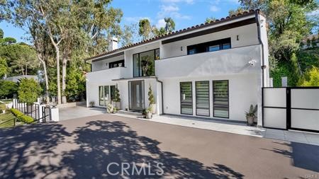 Step into refined luxury with this newly upgraded modern stunner, ideally located in one of Calabasas’ most desirable neighborhoods—just moments from the renowned Calabasas Commons. This exceptional residence offers 4 bedrooms, 4.5beautifully updated bathrooms, and nearly 3,600 square feet of thoughtfully designed living space. A custom wrought iron entry door welcomes you into a dramatic two-story grand foyer, highlighted by soaring ceilings and a breathtaking Bellagio-style multicolor hand-blown glass chandelier. A sleek, contemporary staircase with glass railing sets the tone for the home’s modern elegance. The expansive living room features a stylish gas fireplace and flows seamlessly into the formal dining area, accentuated by a striking Gabriel Scott chandelier—perfect for elevated entertaining. The open-concept chef’s kitchen is a true showpiece, boasting built-in appliances, premium German cabinetry with touch-to-open functionality, and a seamless connection to the inviting family and entertainment area. Retreat to the luxurious primary suite, complete with a spacious walk-in closet featuring custom built-ins and a spa-inspired en-suite bathroom with a large walk-in shower, soaking tub, and designer finishes throughout. Step outside to your private entertainer’s backyard—an oasis designed for both relaxation and hosting—featuring a sparkling pool and spa, custom-built BBQ area, and beautifully landscaped surroundings. Additional highlights include sleek tile flooring throughout the main level, rich hardwood floors upstairs, smart home integration, Tesla charger, dual-pane windows, electric shades, surround sound system, high-tech security camera system, and a spacious three-car garage. Nestled on a quiet, tree-lined cul-de-sac, this home offers the perfect blend of privacy, sophistication, and modern convenience.