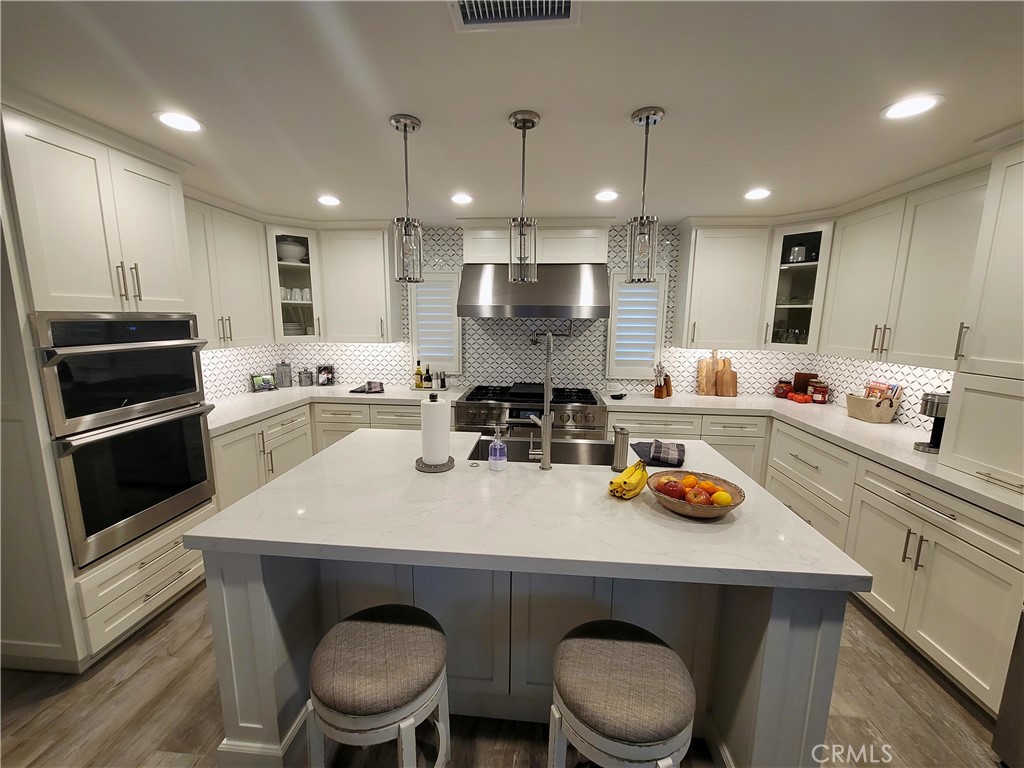 ONCE IN A LIFETIME TURNKEY HOME!! Great curb appeal that carries over to the homes inside. Entertainers dream home with gourmet kitchen featuring 3 convection ovens, walk- in pantry and custom cabinets throughout the whole home. No expense spared as this home has blown in foam insulation on all exterior walls and vaulted ceiling areas. Plumbing updated to above ground with whole home water filtration system (no salt). All new re-vented HVAC system and new condenser unit with 16 seer rating, and Ecobee app controlled thermostat. Emergency generator to run your whole home that automatically switches over when the power goes off in the area. Whole house fan that saves you $$$ in AC bills to cool the home in the evenings with automatic settings. Italian made 8″ wide plank porcelain flooring throughout the home with a state of the art moisture barrier underneath that keeps the tile from becoming freezing cold during the cooler months. Oversized door and floor molding, and crown molding throughout the home. Solid core panel doors with custom hardware. Recessed lighting in all rooms with Lutron switches that all are controlled by an app on your phone. In ceiling speakers with Sonos system receivers in every room, outside patio and garage, that can be individually controlled by phone app. Cat6 cabling in all rooms with extra lines in office. Primary bedroom has a huge walk-in closest with custom organizer and pull rods. All the widows are dual pane Milgard superior, with all covered windows featuring top of the line Sunburst Plantation Poly wood shutters. Central vacuum system with convenient dust-vac pan in kitchen area and is very hypoallergenic as the dust goes out to the main unit in the garage. Nice and quiet as well. Commercial grade surveillance color night vision cameras all over the perimeter and interior areas. Garage features epoxy floors , led ceiling lights, and Tesla home charger with insulation in all the walls. The garage door is a custom, super insulated with a closed aluminum backing. The rear yard is a great entertaining space or staycation area that includes a 6 burner 40″ BBQ , double side burners, warming drawer and 30″ built-in bar sink, Chicago wood burning pizza oven. You can relax by the the fireplace or in the oversized mega jet spa. if you would like a pool, the community pool is just a 1 minute walk away. Rear yard RV paring up to a 44′ RV with a 10′ double gate opening and 30 amp RV hook up. The front RV entry driveway is 25′.