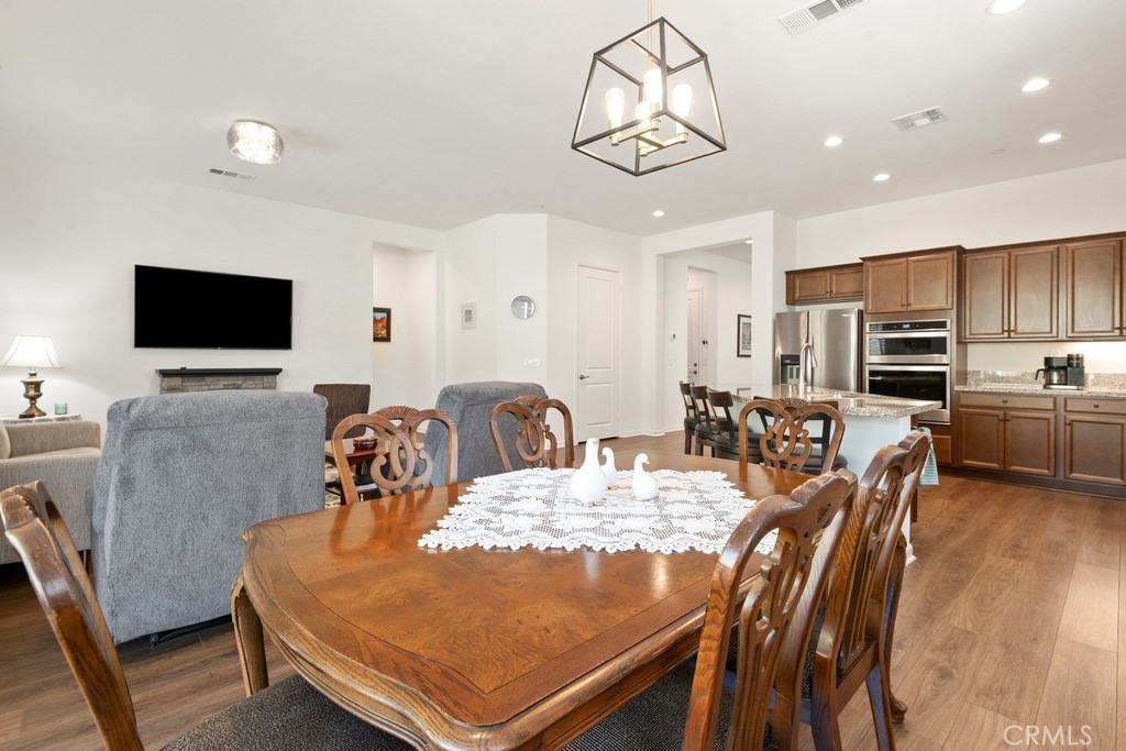 Mortgage savings may be available for buyers of this listing!! upgraded 2-bedroom, 2-bath home with a large den, located in the prestigious Terramor community. This property offers an open-concept layout with 10’ ceilings, recessed lighting, premium light fixtures, built-in ceiling fans, and luxury vinyl plank flooring throughout. PAID OFF SOLAR adds exceptional value and energy efficiency. The kitchen is designed for both functionality and style, featuring a large center island, stainless steel appliances, granite countertops, a walk-in pantry, and cabinetry with pull-out shelves. It opens seamlessly to the living and dining areas, creating a spacious environment ideal for entertaining. The primary suite offers mountain views and a well-appointed ensuite bath with dual sinks, an oversized walk-in shower with bench, private toilet room, and a walk-in closet. The living room opens to a fully hardscaped, private backyard complete with a covered California room, recessed lighting, built-in fans, and blooming rose bushes—an ideal space for indoor-outdoor living. A separate laundry room, located near the entrance from the attached 2-car garage, provides ample storage with upper and lower cabinetry. Residents enjoy access to Terramor’s resort-style amenities, including 5 miles of walking trails, a private 55+ clubhouse, an all-ages clubhouse, indoor and outdoor pools, spa, sport courts, a 24-hour fitness center, outdoor kitchens, game rooms, and poolside service on Sundays.