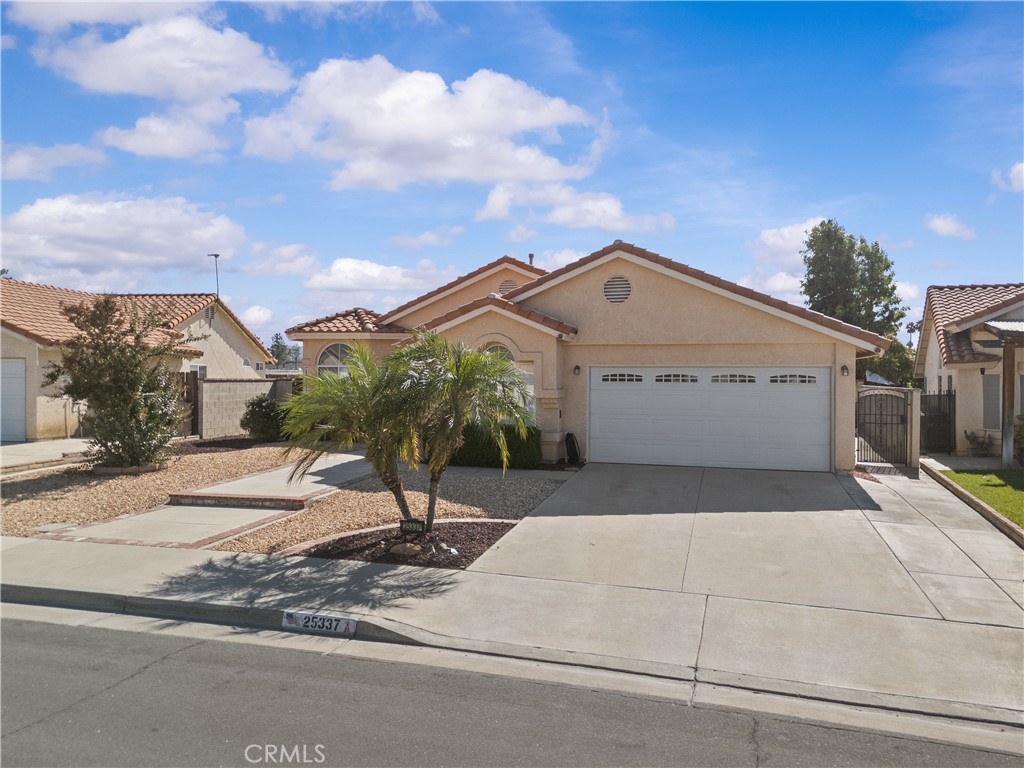 Welcome to 25337 Howard Drive, which is priced to SELL and where style, space, and serenity come together in the heart of the desired neighborhood of Valle Vista in East Hemet. Set on a rare, massive 10,000 sq. ft. lot surrounded by mountain views and open skies, this fully renovated single-story home offers a peaceful retreat with modern comfort and timeless charm. Step through the front door and feel the warmth of natural light filling over 1,700 sq. ft. of beautifully refreshed living space. The bright, airy kitchen is a showstopper — featuring all-new stainless steel appliances, abundant cabinet and counter space, adorable bay windows and a cozy breakfast nook. A convenient serving window opens to the formal dining area, creating the perfect flow for entertaining. The adjoining living and dining rooms are centered around a fantastic double-sided fireplace — the heart of the home — offering a cozy glow from every angle, the perfect space for friends and family to gather. Sliding doors from here open to your expansive backyard, where endless possibilities abound: build a sparkling pool and spa, RV parking, add an ADU, or simply enjoy the open space and privacy with no rear neighbors. The primary suite is a sanctuary of its own, with huge double-door entry, backyard access, and dual walk-in closets. Three spacious additional bedrooms offer plenty of room for family, guests, home office or really anything you can think of. With new flooring, fresh paint throughout, window coverings throughout, new HVAC and new water heater, this home is completely move-in ready. Multiple detached structures provides bonus space — ideal for an office, studio, man-cave or workshop. Enjoy low taxes, the freedom of no HOA, and convenient access to the Ramona Expressway for easy commuting. Charming, modern, and move-in ready — 25337 Howard Drive is more than a home; it’s where your next chapter begins. Seller will consider including ALL appliances including refrigerator, washer and dryer with an acceptable offer, please hurry and show as this cutie will not last!