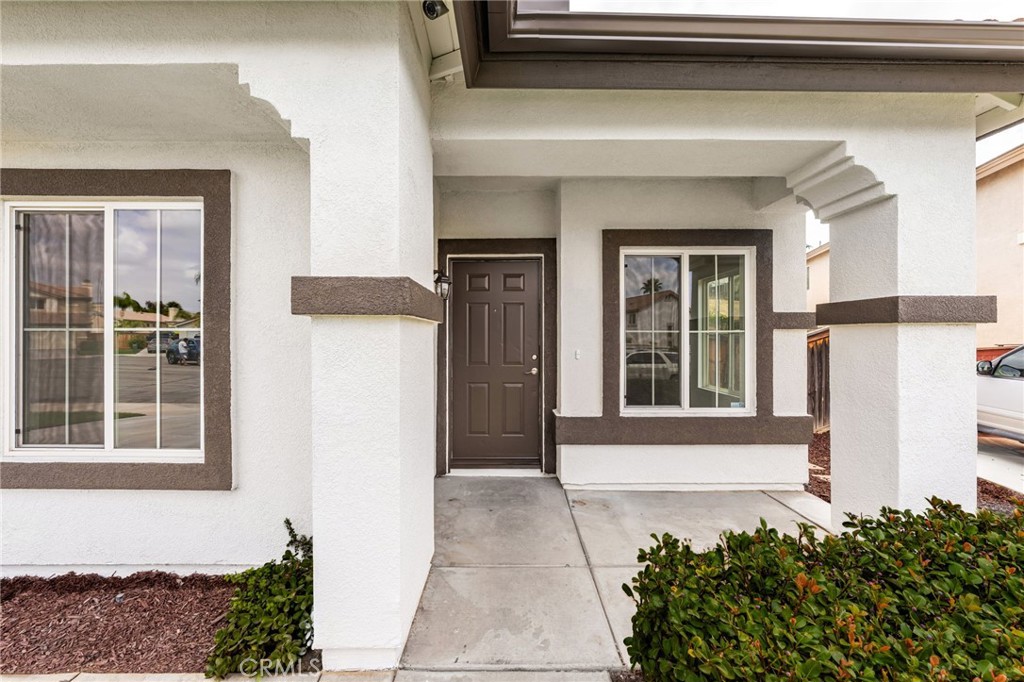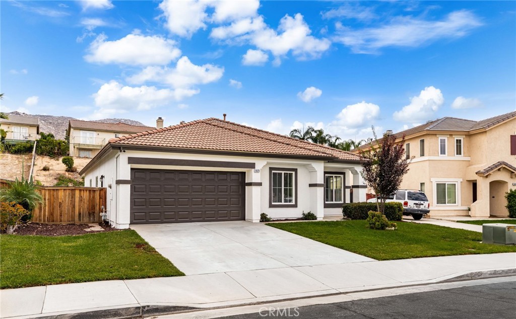 Located in the highly sought-after Moreno Valley Ranch community, this home boasts three bedrooms, two bathrooms, and a large bonus room that could serve as a fourth bedroom, office, playroom, or den. With just under 2,000 sq ft of living space, the open floor plan features a beautiful living room and dining area combo. Enjoy beautiful new countertops in your kitchen, refinished hardwood floors, new interior and exterior paint throughout the home, new fans, a new garage door, new vanity in guest bathroom, freshly painted white cabinets giving the home a more modern and updated look with vaulted ceilings throughout. The spacious updated kitchen features bar seating. The family room has a cozy gas fireplace. The large primary suite features a spacious walk-in closet with built-in shelving and a primary bath with dual sinks, separate tub and shower, and a private toilet. The remaining bedrooms are also spacious with good-sized closets. Step out to your private backyard through the family room, with a patio cover, perfect for entertaining and providing an experience for indoor outdoor living. Sellers have been thoughtful in their updates ensuring the new owners have a move in ready home. Enjoy community amenities, including a lake, clubhouse, pool, spa, basketball courts, and a fitness center, all with a low HOA. Close to schools, parks, and restaurants, this home truly does not disappoint. Come take a look!