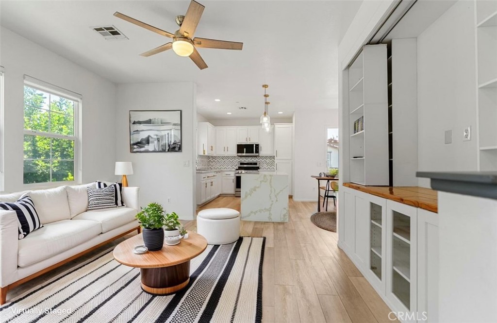 Step into modern excellence with this beautifully upgraded, 1,224 sq ft townhome in the secure, highly sought-after Iris Landing gated community. This bright, 2-story, 2-bedroom, 2-bathroom unit enjoys a prime corner-lot, end-unit location, offering maximum privacy and light. The home is move-in ready! With brand-new, high-end features, including sleek LVP flooring installed throughout the main living areas. The gourmet-ready kitchen shines with a gorgeous, upgraded quartz countertop island, perfect for hosting and daily meals. Relax in the stunning primary suite, a true retreat featuring a completely upgraded master bathroom and a custom-designed, upgraded walk-in closet. Enjoy multiple outdoor spaces with two private balconies and a charming front porch. Convenience is ensured with an inside laundry room and an attached, direct-access two-car garage. As a resident, you gain unmatched access to the expansive Moreno Valley Ranch HOA amenities, including a 35-acre lake, a large community pool, spa, fitness center, clubhouse, and more! This home is turnkey! All the custom work is done. Don’t miss this opportunity for a superior lifestyle near shopping and dining!