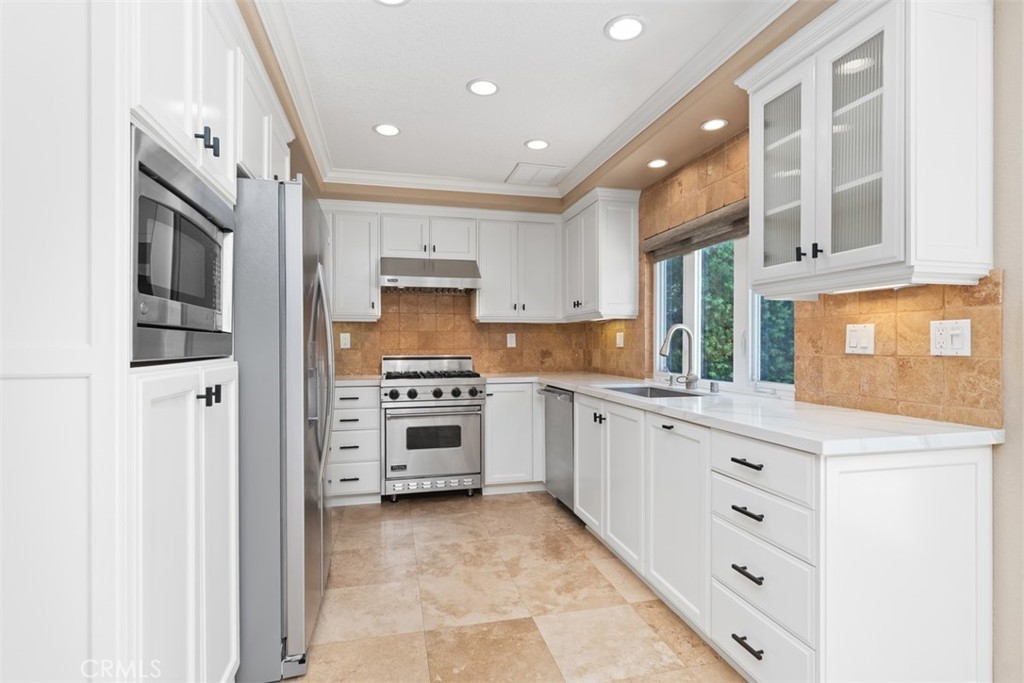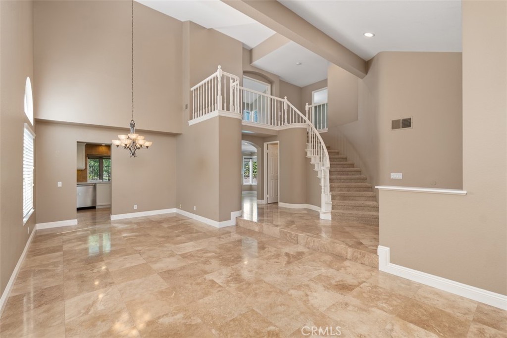Welcome to this beautifully updated pool home located in the highly sought-after Auburn Ridge neighborhood of South Mission Viejo. Featuring four bedrooms, a main-floor den, and two-and-a-half bathrooms, this spacious and turnkey residence offers the ideal layout for comfortable everyday living. Abundant natural light fills the home, accentuating the soaring double-height ceilings. The updated kitchen boasts white shaker cabinetry, quartz countertops, a stylish tile backsplash, durable tile flooring, and a modern stainless-steel appliance suite. The adjoining dining area is perfect for both everyday meals and hosting guests. The inviting family room includes a cozy fireplace and overlooks the private backyard with views of the sparkling pool and spa. A large downstairs den provides a quiet space for a home office or flex room, while the convenient laundry room includes an LG washer and dryer. Upstairs, the primary suite features vaulted ceilings and an en-suite bathroom complete with dual sinks, a soaking tub, and a separate shower. Three additional upstairs bedrooms and a full bathroom complete the second level. Enjoy outdoor living year-round with a beautifully landscaped backyard that includes a pool, heated spa, and a patio area ideal for dining and relaxation. Conveniently located near parks, golf courses, shopping, dining, and within a top-rated school district, this exceptional home offers both comfort and convenience in one of Mission Viejo’s most desirable communities.