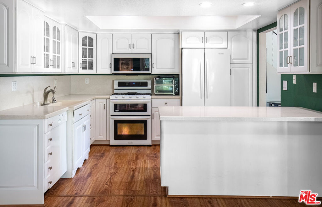 One of the largest corner lots in Valencia Racquet Club! Rare find with unmatched lot size and location. This stylish 4-bed, 2-bath home boasts an open layout filled with natural light, soaring ceilings, fresh paint, and smart lighting. A bright white kitchen with a large island, glass-front cabinets, and recessed lighting connects to dining and family spacesideal for hosting. French doors open to a private wraparound backyard featuring a brick patio and plenty of room to garden, play, or add a future pool. The primary suite on the main level includes an updated vanity and ample closets. Upstairs, a large versatile bedroom with two walk-in closets and designer wallpaper offers space for a guest retreat, office, or studio. Two additional bedrooms share a full bath. Extras include security cameras, an oversized 2-car garage, low HOA fees, and no Mello Roos.The community offers a pool, spa, sports court, and playground, with large public parks and top-rated schools just minutes away.