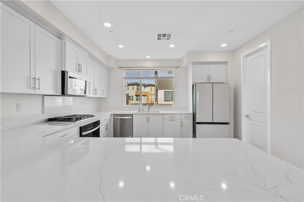 Welcome to your personal “SANCTUARY” at 27579 Sanctuary Ct, Valencia! This turn-key, top-of-the-line home offers a spacious three-level layout perfect for modern living and entertaining. On the first level, enjoy a private bedroom with an attached bath, ideal for an in-law suite or guest room. Ascend to the second level, where you will find a stunning kitchen and family room with breathtaking views in a prime location within this beautiful community. The kitchen is a chef’s dream, featuring high-end appliances, energy saving upgrades, LED lighting, and fully paid-off solar. The third level hosts a second bedroom with full bath, plus an expansive primary suite with a luxurious spa tub, dual sinks, a connecting shower, and a walk-in closet, the ultimate retreat! You’ll absolutely love the high ceilings, recessed lighting, beautiful hardwood floors throughout, and a spacious two-car garage. Enjoy resort-style living with a clubhouse, multiple pools, spa, playgrounds, barbecue areas, and scenic walking trails. Every detail has been thoughtfully designed for comfort, style, and effortless living. YOUR PERFECT SANCTUARY AWAITS!
