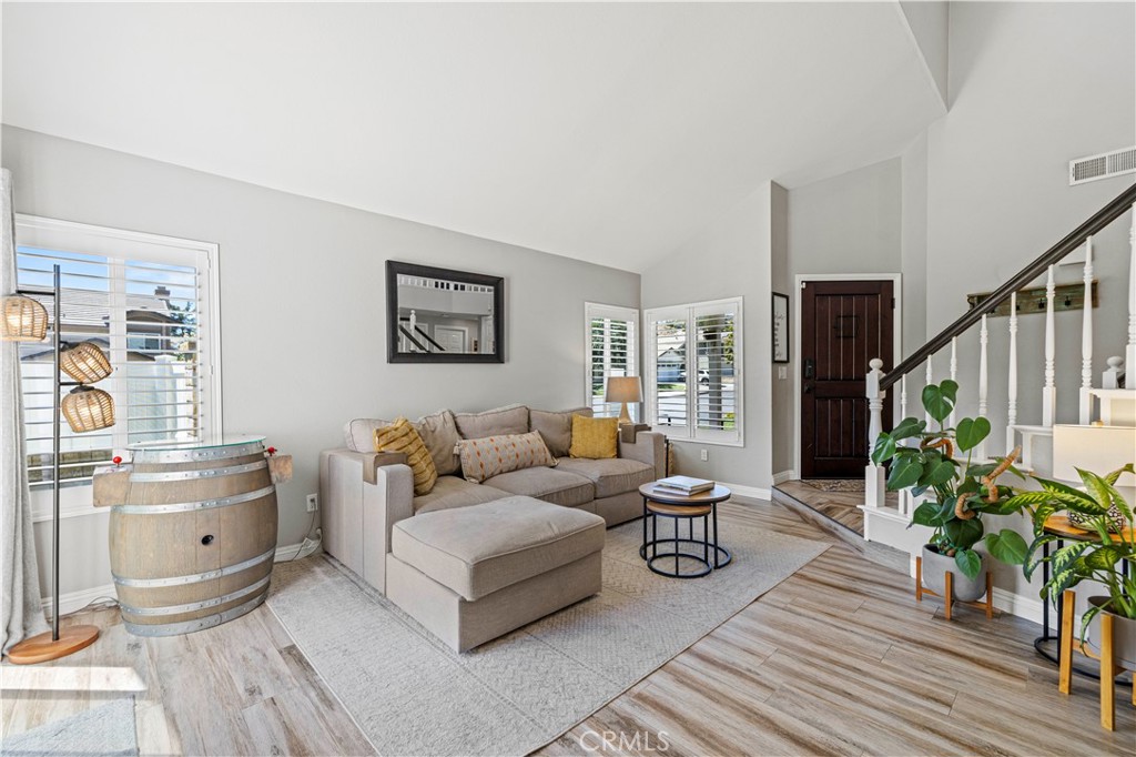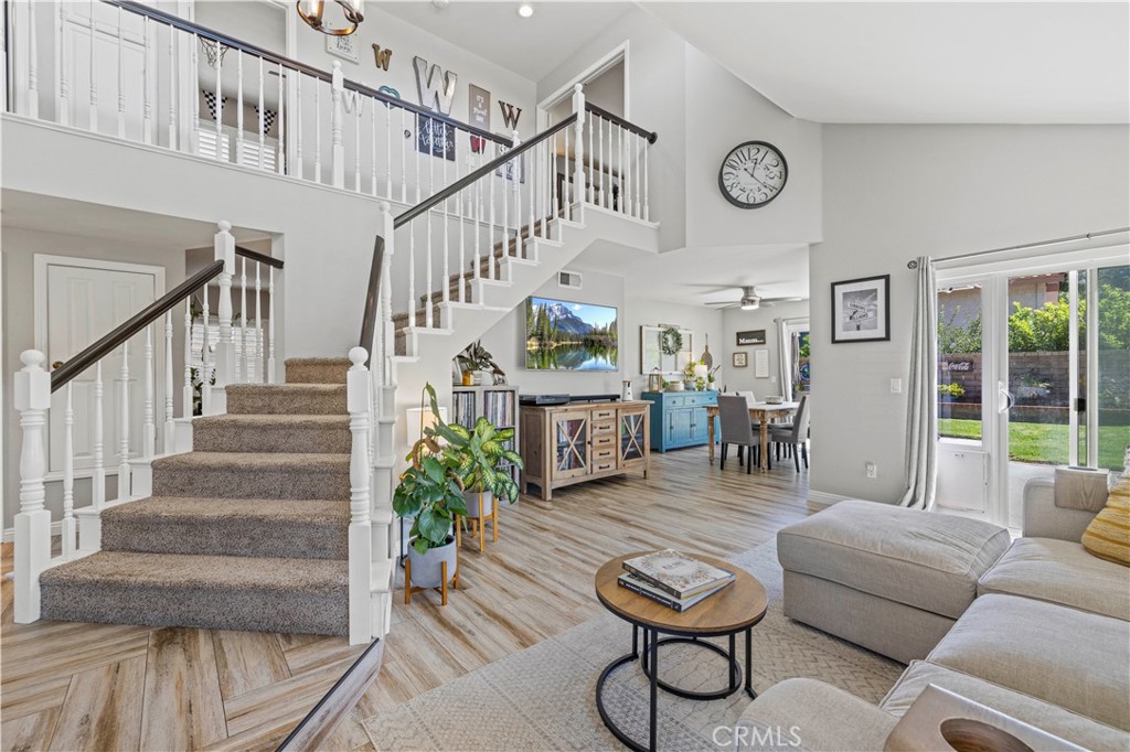 GORGEOUS MOVE-IN READY SAUGUS DREAM HOME! This pristine corner-lot gem radiates pride of ownership and tasteful, modern style! A sprawling green lawn and mature shade tree welcome you, complemented by a charming brick ribbon walkway and driveway, plus a cozy shaded porch! Step inside to soaring ceilings, abundant natural light, and beautiful neutral wood-like flooring throughout the main level. The inviting living room opens to the backyard through sliding glass doors, as does the adjacent dining room—perfect for gathering with family and friends. The cozy family room features a light stone fireplace and flows effortlessly into the bright, modern kitchen, showcasing crisp white cabinetry, granite countertops, recessed lighting, stainless steel appliances, a walk-in pantry, and a sunny window with backyard views. A versatile main-floor bedroom and full bath are ideal for guests, a home office, or multi-generational living. Upstairs, two secondary bedrooms offer closet space and share a full bath, while the primary suite impresses with raised ceilings, a walk-in closet, and an ensuite bath with dual vanities and a shower/tub combo. The backyard offers plenty of potential, complete with a green lawn, brick planter boxes, a concrete patio with brick ribbon detailing, and durable vinyl-and-brick fencing. Additional highlights include laundry in the garage and a prime location near parks, schools, paseos, shopping, dining, and easy freeway access. This is the perfect blend of comfort, style, and convenience in one inviting package, ready for you to move in!