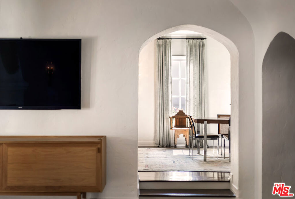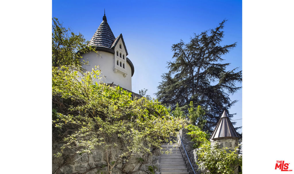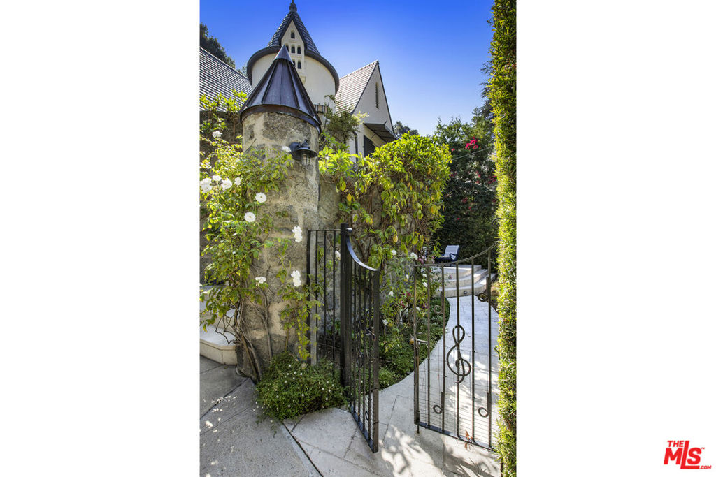 c.1924 John DeLario, ARCHITECT. LEGENDARY chief designer of HOLLYWOODLAND and creator of some of Beachwood Canyon’s most iconic residences, including the signature stone entry gates, left his visionary mark on this pedigree French Norman storybook home, as well as on landmarks like Castillo Del Lago, (c.1926) among Southern California’s most significant Spanish estates. PRIVATE Entertainment home. 4-bed, 3-bath; formal dining room beneath hand-painted coffered ceilings that open to the canyon, an adjoining living room with sculpted coved ceiling, rich hardwood floors, and striking fireplace, all exemplifies DeLario’s craftsmanship where Hollywood romance meets architectural precision. Entertainers home: French doors along the main level flow to the courtyard and terraced lawn, evoking the grace of a petite European villa. A stone patio invites slow afternoons, whether savoring a meal or a book whose pages turn slowly. The classic kitchen pairs connoisseurs’ appliances with pretty custom shaker cabinetry. Three boutique-inspired bedrooms occupy private corners of the home, while a fourth suite with a private musical-entry nod and a memorable media room forms a garden-wrapped retreat. Interiors layered by Kathryn Ireland and Brittany Bromley infuse warmth and character throughout, and direct access adds ease. The hand-hewn stone exterior, a signature of DeLario’s artistry, endures as a rare and distinguished fragment of Hollywoodland’s architectural Beachwood legacy. –Public records show 2550sqft. Vendor measurements are 2760sqft. Buyer to verify.