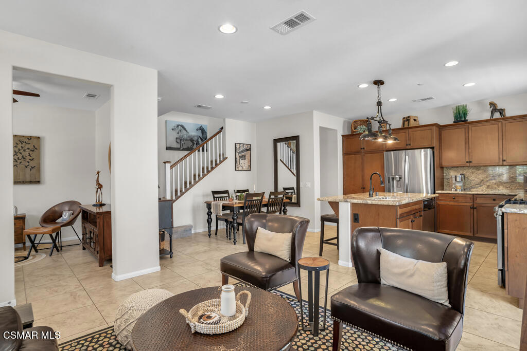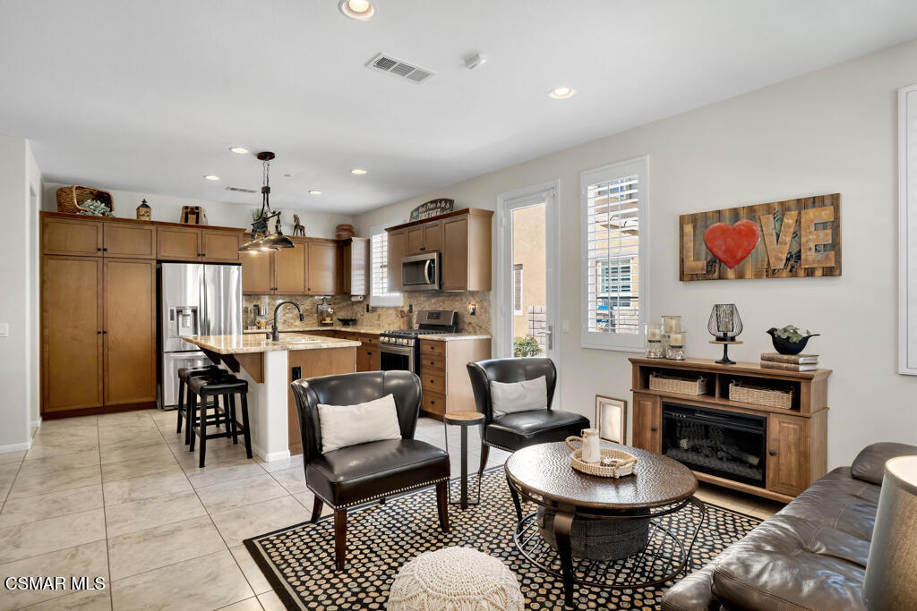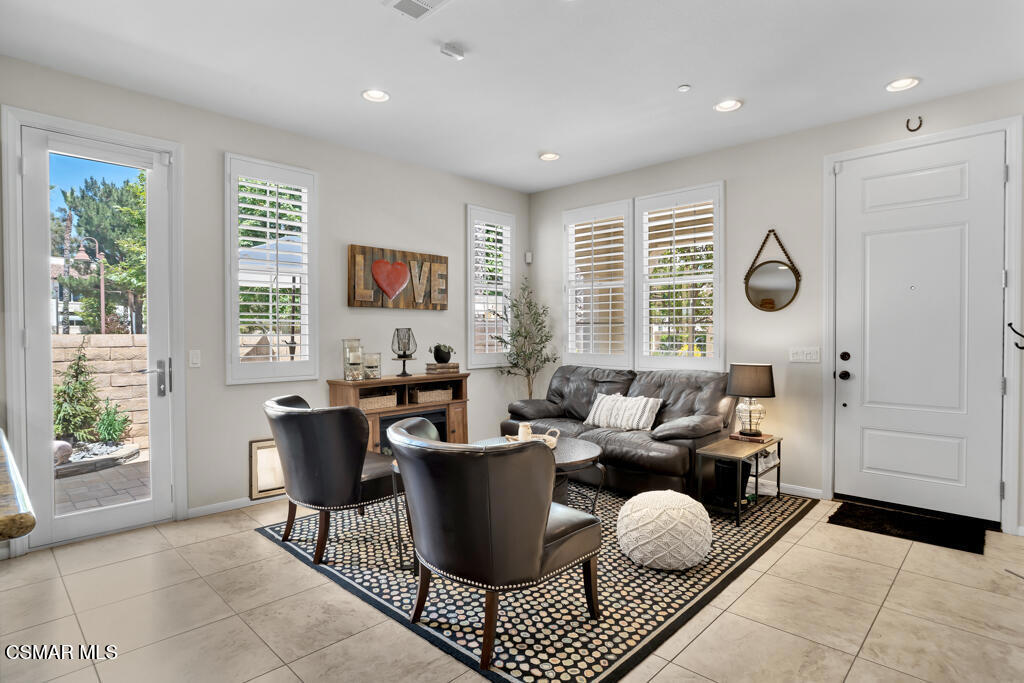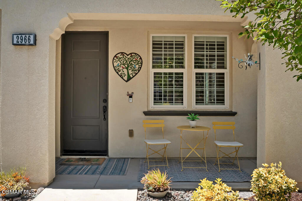 Charming, Bright & Move-In Ready in Central Simi Valley! Welcome to 2966 Encina Lane–a super clean and inviting 3-bedroom, 2.5-bath single residential home in the sought-after Los Arboles at Greenbriar community. Built in 2012 and offering approximately 1,526 sq ft of thoughtfully designed living space, this home blends comfort, style, and low-maintenance living with drought-tolerant landscaping maintained by the HOA. From the moment you arrive, you’ll feel at home. A welcoming covered front patio with a table and two chairs (included) creates the perfect spot to relax with your morning coffee. Step inside to an open-concept layout filled with natural light, creating a light and bright atmosphere that flows throughout the main level. Light tile flooring, soft off-white wall tones, and recessed LED lighting throughout enhance the home’s fresh and airy feel. All windows feature 3-inch shutters, adding classic style and cohesion. Every inch of this home is impressively maintained, and move-in ready, offering a space that truly feels like home. Just off the living area is a flexible space perfect for a home office, study, or hobby room–framed by a double-door opening (no doors) and featuring a ceiling fan for added comfort. The heart of the home is the beautifully appointed kitchen, designed with style and function in mind. Enjoy granite countertops and backsplash, maple cabinetry, and a large center island with seating, a stainless sink, black fixtures, and pendant lighting. The kitchen is equipped with high-quality stainless appliances, including a Samsung 5-burner gas range/oven, Whirlpool built-in microwave and dishwasher, and LG side-by-side refrigerator with bottom freezer. A glass door leads to a private backyard retreat with paver hardscape, an iron side gate access from the rear, ambient outdoor lighting, and low-maintenance landscaping. Charming features like a potting bench, iron plant shelf, small fountain, and two large potted plants (all included) bring character and warmth to the space. Adjacent to the kitchen is a sunlit dining nook, a convenient powder room with a pedestal sink, and direct access to the attached two-car garage, which offers cabinet storage, tool-hanging racks, overhead lighting, and an insulated garage door. The home also includes a tankless water heater, radiant-barrier roofing, and a whole house fan/humidifier system, adding energy efficiency and enhanced year-round comfort. Upstairs, Berber carpeting adds warmth, and the hallway features linen cabinetry and a laundry closet with Whirlpool washer and dryer (included), plus overhead organizers. Two secondary bedrooms each offer ceiling fans, large windows, and wall closets, and they are serviced by a spacious hall bathroom with a dual-sink cultured marble vanity, maple cabinetry, modern lighting, and a separate tub/shower area. The relaxing primary suite features three large windows, a ceiling fan, a walk-in closet, and an en suite bath with tile flooring, a soaking tub, separate glass-enclosed shower with a sit-down bench, and a dual-sink cultured marble vanity. Enjoy community amenities like walking paths, a kids’ playground, picnic areas, and sidewalks throughout. With its scenic foothill location, eco-conscious design, and proximity to shopping, dining, parks, and commuter routes, this home truly offers easy living in the heart of Simi Valley.