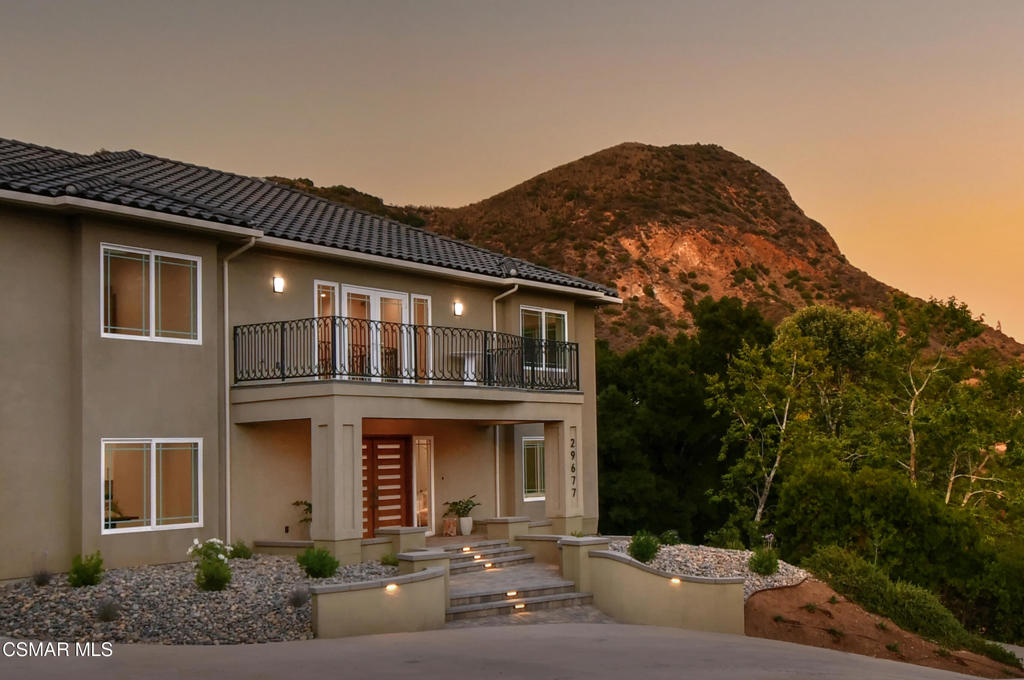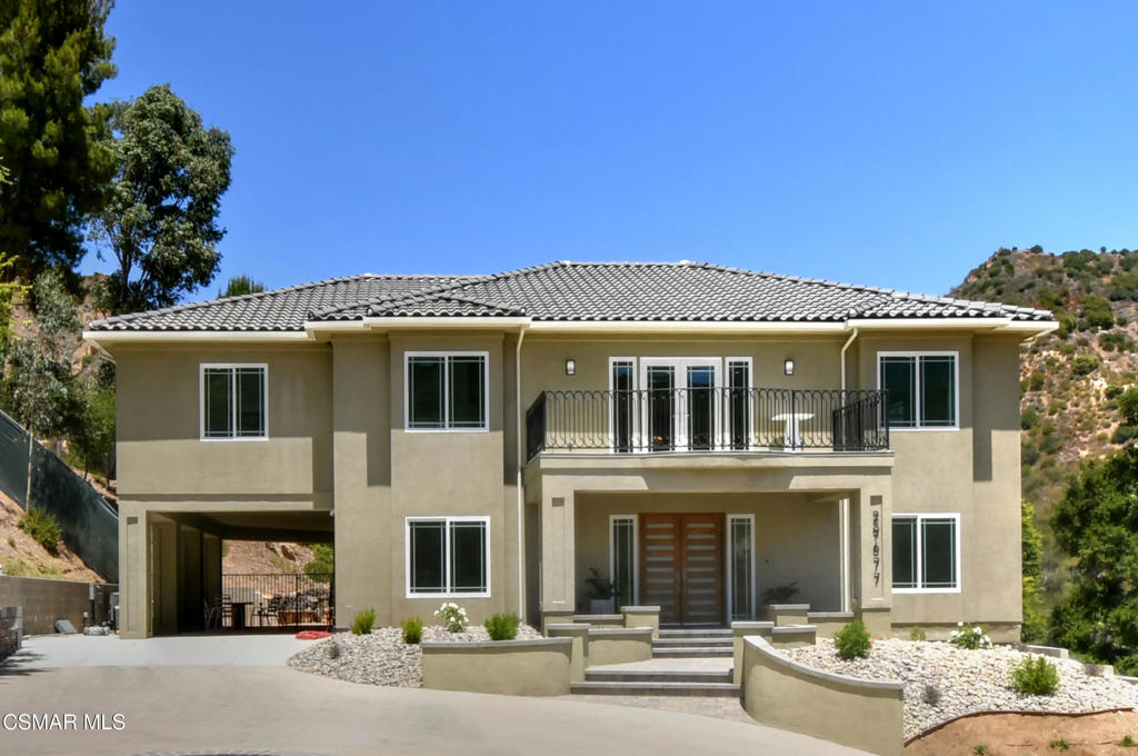 Nestled along the scenic Mulholland Highway with sweeping views of the Santa Monica Mountains, this newly constructed 2025 estate offers refined living across 1.59 acres of private, horse-zoned land. The 4-bedroom, 5-bathroom residence includes two dedicated offices, soaring 20-foot entry, red oak flooring throughout, custom maple and mahogany millwork, and oversized windows that flood the home with natural light. The gourmet kitchen features Wolf appliances, a Sub-Zero fridge, quartz countertops, and a walk-in butler’s pantry. Enjoy multiple balconies, a mezzanine-style upper walkway, and a spacious primary suite with a ready-for-design walk-in closet. Additional features include a 1,200 sq. ft. garage, 800 sq. ft. finished basement with powder room, RV parking, spa and pool with waterfalls, dual-zone HVAC, pre-wired solar, and full fire safety systems. Built to the latest seismic and fire codes, the home rests securely on bedrock. Located just 10 miles from the Pacific Coast Highway, with top Las Virgenes schools, hiking and biking trails at your doorstep, and iconic spots like The Old Place and Malibou Lake moments away. No HOA! Future development potential make this a rare opportunity in a prime Agoura location.
