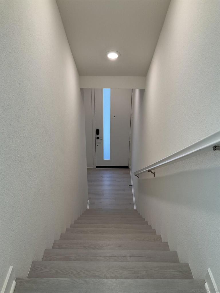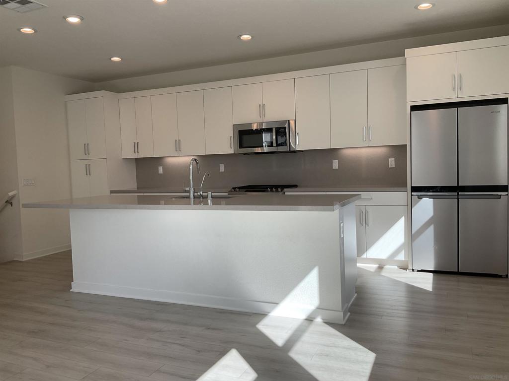 3 bedroom, 2.5 bathroom gorgeous corner townhome with extra large 2 car attached garage with storage space and epoxy floor. Nice large kitchen with huge island, upgraded quartz countertops with full backsplash, SS top of the appliances and tier 5 stages Reverse Osmosis Drinking water system. Large balcony. Luxury vinyl planks floors throughout the whole house with custom made steps at the stairway, and tile floor in the bathrooms. Laundry with a full size washer and dryer. Facing South-West, very light and bright unit. Custom light filtering roller shades at all windows. Upgraded lighting system throughout the whole house with 4 can lights in each bedroom, modern chandelier in liv.room and ceiling fan in Master suite. This is a smart home where you could operate your front and garage doors, lights, A/C, etc from your smartphone. The award-winning community of Civita offers 2 swimming pools and jacuzzis, 2-story gym, 14 acre park, children’s play area, outdoor amphitheater, community garden, and splash pad. Dining and shopping options close by. This condo is conveniently located with easy access to I-8, 805 and 163. Just 10 min to the beach and a few minutes to shops, restaurants, Mission Valley and Fashion Valley malls, new stadium, etc. Close to downtown and SD airport.