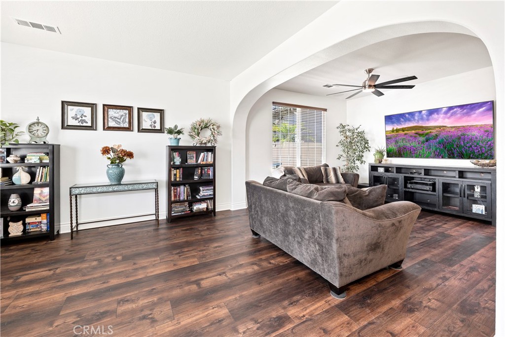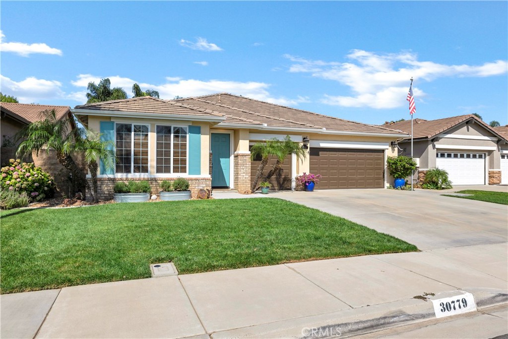 Welcome to this stunning Woodside-built, highly upgraded single story home in the Menifee Ranch community of Menifee offering 2,588 sq. ft. of beautifully upgraded living space on a 7,405 sq. ft. lot. Built in 2002, this home blends timeless design with modern comfort & is truly turnkey! Step inside through the elegant arched foyer & discover a thoughtfully designed open floor plan. The home features 4 bedrooms & 2 full baths, including a split layout that provides privacy for the spacious primary suite. Enjoy multiple living spaces, including a formal dining room with Tuscan old-world finished drywall creating an elegant dining experience, a living room with arched details & a game room/additional family room with built-ins & abundant natural light through the large sliding doors leading to your backyard paradise! The upgraded kitchen is the centerpiece of the home, complete with an expansive island, breakfast bar, quartz countertops, custom backsplash, and a wine bar—perfect for entertaining. Additional highlights include LVP and tile flooring throughout, built-in media niches and bookcases, surround sound, a Nest thermostat, and a new HVAC system and heat pump installed in 2024. The primary suite has been fully renovated to provide a spa-like retreat with a walk-in tile shower featuring dual shower heads, a dual sink vanity with beautiful lighting and a custom dream closet with built in shelving for optimal storage and organization. Step outside through the game room to your private entertainer’s backyard. A fully equipped outdoor kitchen features a 5-burner BBQ, sink, and ice tub. Enjoy the expansive patio cover with ceiling fans and sun screens, a stained concrete patio, and low-maintenance artificial turf with a 4-hole putting green, all surrounded by mature landscaping. The 3-car garage offers epoxy flooring, storage racks & direct access to the backyard. Tastefully upgraded laundry room matches the kitchen upgrades & offers built-in cabinets for ample storage and sink for added convenience. Solar system to help energy efficiency & offset the cost of living. All of this is located in the Menifee Ranch community with low HOA, in the heart of Menifee (one of California’s fast growing cities), near the Menifee Town Center, shopping, amenities, close to schools, parks & the popular Gale Webb Sports Park. This property embodies pride of ownership & is truly a home inspector’s dream—offering style, upgrades & comfort at every turn.