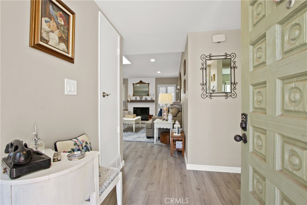 Captivating Turnkey, Highly Upgraded, Single Level Condo in The Beautiful Iconic City of San Juan Capistrano. Enjoy newer gorgeous plank LTV flooring and all upgraded windows and sliders throughout this Casitas Capistrano residence. The gourmet kitchen includes popular white cabinets, solid surface counters and stainless appliances. The formal living room includes a skylight, cozy fireplace and access to the spacious outdoor patio. The primary bedroom includes a dual vanity bath with newer cabinets and solid surface counters. The tub and shower area is newly updated and available to the large secondary bedroom. The sprawling outdoor private patio is the perfect place to relax with your morning coffee. This rare end- unit includes an attached two-car garage affording a separate laundry area and privacy when entering this lovely home. This wonderful location is close to both J Serra and The Mission Schools. San Juan hosts summer concerts at the Mission San Juan Capistrano with its historic designation and many community events. This location is accessible to wonderful shopping, the Los Rios District, New Riverwalk Marketplace and the fabulous restaurants of San Juan. Enjoy a short jaunt to the Dana Point Marina with its beach fun.