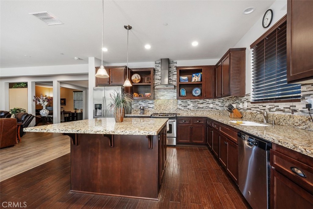 Are you a young family or an active retiree looking for the perfect home? Look no further! Priced has been reduced for this inviting single-level residence in Temecula Valley’s master-planned community of Spencer’s Crossing is waiting for you. Freshly updated and ready for move-in, this charming cul-de-sac home features an open-concept layout perfect for family living. Enjoy the elegance of gorgeous wood laminate flooring and architectural details that are both impressive and comfortable. Formal dining off the entryway, with sitting area that flows seamlessly into the great room. Curious to see what makes this home truly stand out? Schedule a personal tour to experience the flow and feel of the space, explore the vibrant community amenities to envision your new lifestyle, and imagine your unique décor in the open living areas. Imagine living in a community buzzing with activity, where recreation, top-notch schools, diverse dining options, and convenient shopping are all at your fingertips! Whether you’re looking for a fun day out or a place to nurture your family, this location has got you covered. Schedule today for a private tour. The heart of the home boasts a beautiful mantled fireplace, creating a cozy atmosphere, and a stunning kitchen that is truly a chef’s delight! Enjoy pendant lighting, granite countertops, espresso cabinets, and an enormous center island, perfect for entertaining. The stainless steel appliances and built-in shelving add to the kitchen’s wow factor! This home is fully wired for a backup generator. The spacious 3-car garage offers ample storage, including suspended storage for lighter items. Families will appreciate access to top-rated schools, including Lisa J. Mails Elementary and Dorothy McElhinney Middle, just 1.2 miles away, and Vista Murrieta High School, only 2.7 miles away. For your shopping convenience, Costco is within close proximity. A paradise for fresh fruit and vegetable lovers, boasting two cherry trees, an apple tree, an orange tree, a loquat tree, two avocado bushes, and a jujube tree. Plus, you’ll enjoy a thriving garden with tomatoes, sweet potatoes, and pumpkins, all with the convenience of sprinkler coverage. Connect with us today to arrange your visit and embark on the journey to discovering a home that fits your lifestyle.