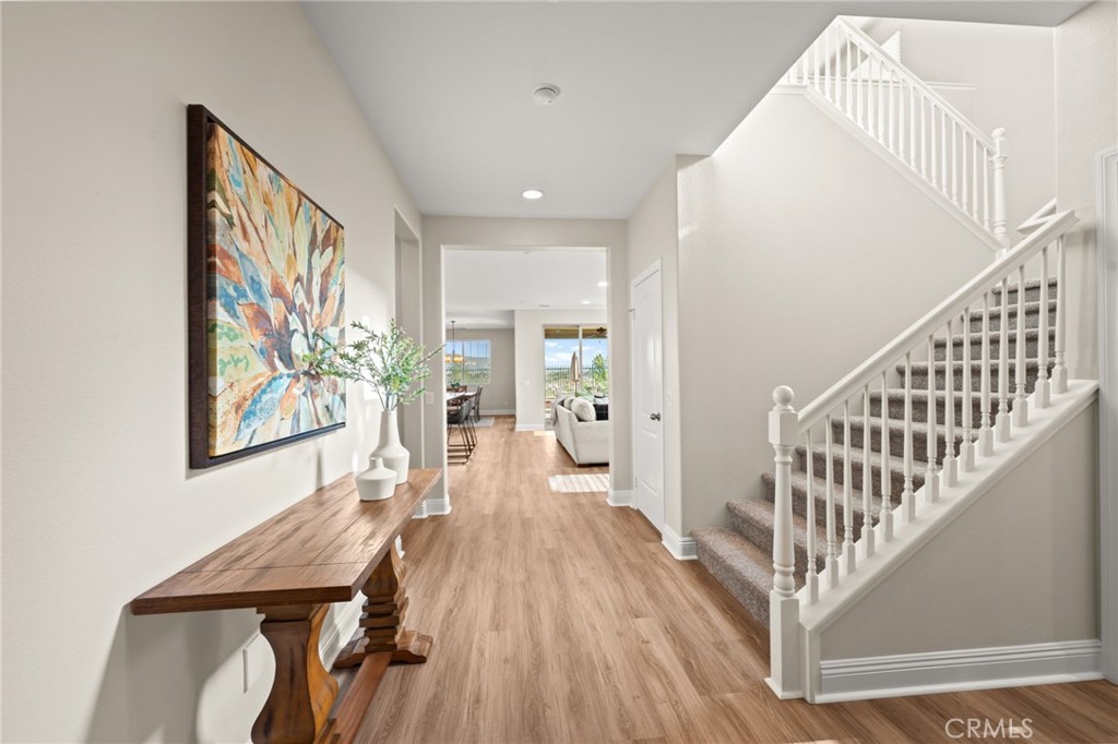 Located on one of the most desirable elevated lots in the gated community of Roripaugh Ranch, this home offers over 90 linear feet of unobstructed southern views, ultimate privacy, and room to add a future pool—making it hands down the best lot in the neighborhood. Spanning just under 3,200 sq. ft., this sought-after 2nd Gen floorplan features a rare downstairs attached casita with its own private entrance. Designed as a fully functioning apartment, the casita includes a living room, bedroom, wet bar with under-counter refrigerator, built-in microwave, and its own stackable washer/dryer. Inside the main residence, brand-new LVP flooring extends throughout the downstairs. Off the entry is a private office, while the open-concept layout showcases a chef’s kitchen with a large central island, granite countertops, stainless steel appliances, and a double oven. The kitchen flows seamlessly to the dining area and great room, both offering direct access to the covered California room with a built-in fireplace—perfect for indoor/outdoor living and entertaining. Upstairs, you’ll find a spacious loft, laundry room, and two secondary bedrooms with a shared bath. The luxurious primary suite is a true retreat, highlighted by three oversized windows framing the breathtaking views, a spa-like bath with dual sinks, soaking tub, walk-in shower, and an expansive walk-in closet. Living in Roripaugh Ranch means enjoying resort-style amenities including a clubhouse, 24/7 fitness center, pool and spa, tennis and basketball courts, newly added pickleball courts, two parks, and private walking trails. This is a rare opportunity to own a premier view lot and a versatile multigenerational home in one of Temecula’s most sought-after communities.
